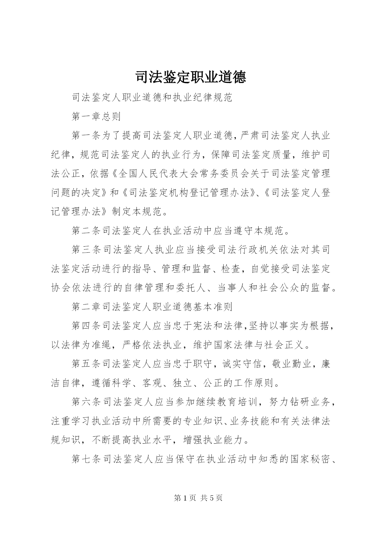第PAGE\*Arabic\*MERGEFORMAT5页共NUMPAGES\*MERGEFORMAT5页司法鉴定职业道德司法鉴定人职业道德和执业纪律规范第一章总则第一条为了提高司法鉴定人职业道德,严肃司法鉴定人执业纪律,规范司法鉴定人的执业行为,保障司法鉴定质量,维护司法公正,依据《全国人民代表大会常务委员会关于司法鉴定管理问题的决定》和《司法鉴定机构登记管理办法》、《司法鉴定人登记管理办法》制定本规范。第二条司法鉴定人在执业活动中应当遵守本规范。第三条司法鉴定人执业应当接受司法行政机关依法对