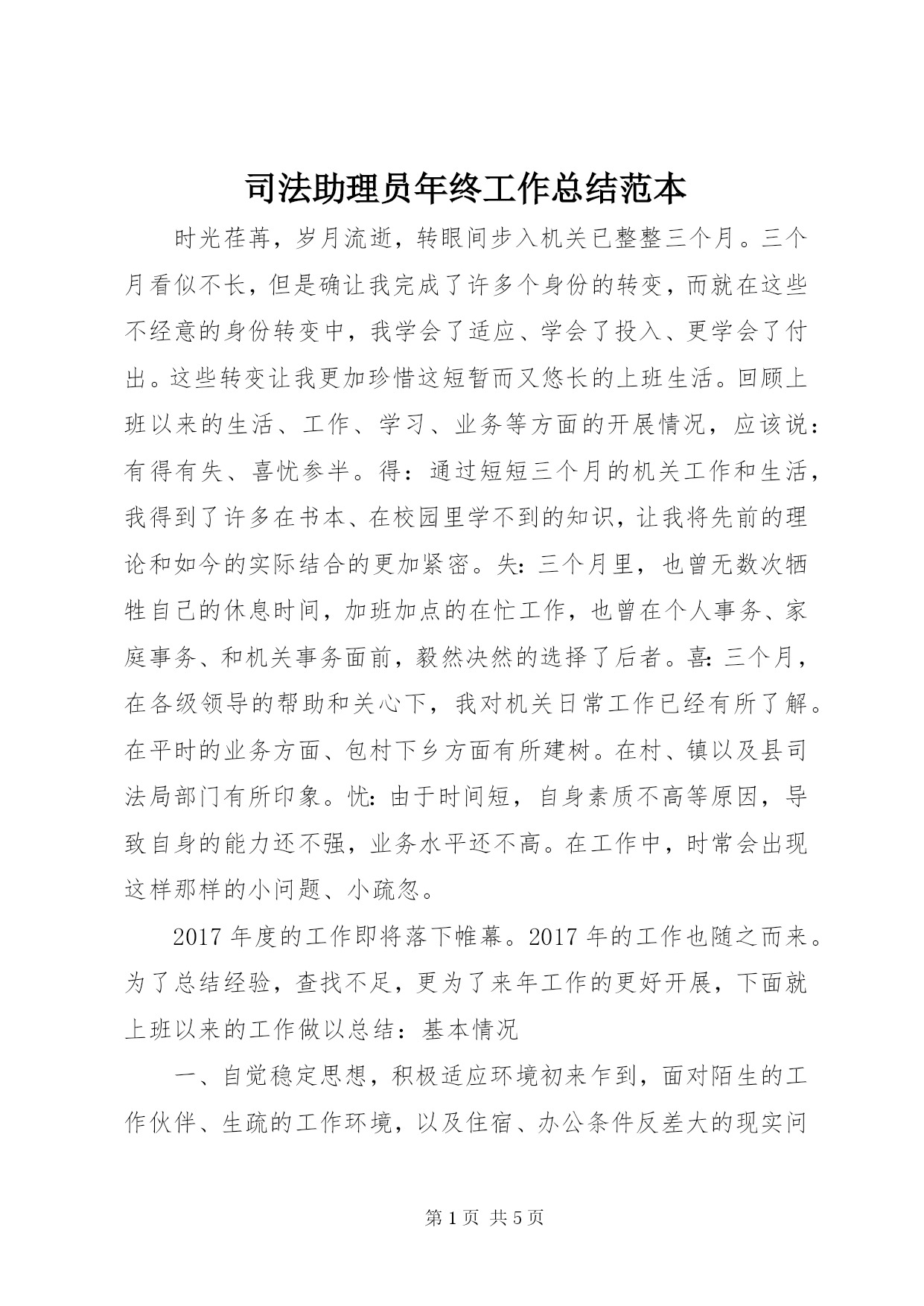 第PAGE\*Arabic\*MERGEFORMAT5页共NUMPAGES\*MERGEFORMAT5页司法助理员年终工作总结范本时光荏苒,岁月流逝,转眼间步入机关已整整三个月。三个月看似不长,但是确让我完成了许多个身份的转变,而就在这些不经意的身份转变中,我学会了适应、学会了投入、更学会了付出。这些转变让我更加珍惜这短暂而又悠长的上班生活。回顾上班以来的生活、工作、学习、业务等方面的开展情况,应该说:有得有失、喜忧参半。得:通过短短三个月的机关工作和生活,我得到了许多在书本、在校园里学不到的