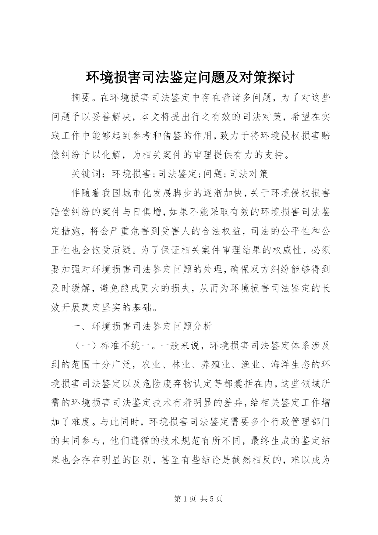 第PAGE\*Arabic\*MERGEFORMAT5页共NUMPAGES\*MERGEFORMAT5页环境损害司法鉴定问题及对策探讨摘要。在环境损害司法鉴定中存在着诸多问题,为了对这些问题予以妥善解决,本文将提出行之有效的司法对策,希望在实践工作中能够起到参考和借鉴的作用,致力于将环境侵权损害赔偿纠纷予以化解,为相关案件的审理提供有力的支持。关键词:环境损害;司法鉴定;问题;司法对策伴随着我国城市化发展脚步的逐渐加快,关于环境侵权损害赔偿纠纷的案件与日俱增,如果不能采取有效的环境损害司法鉴定