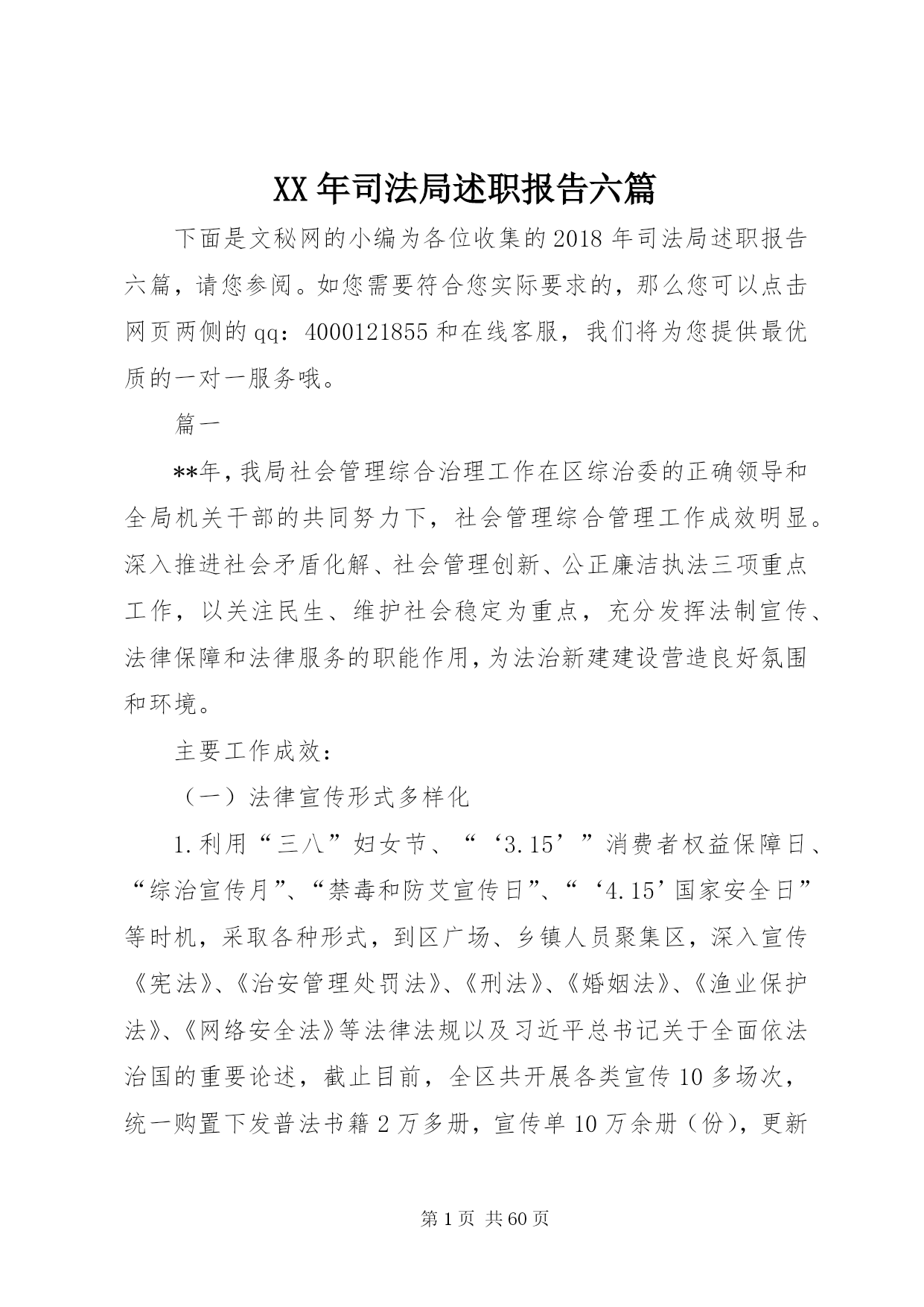 第PAGE\*Arabic\*MERGEFORMAT60页共NUMPAGES\*MERGEFORMAT60页XX年司法局述职报告六篇下面是文秘网的小编为各位收集的2018年司法局述职报告六篇,请您参阅。如您需要符合您实际要求的,那么您可以点击网页两侧的qq:4000121855和在线客服,我们将为您提供最优质的一对一服务哦。篇一**年,我局社会管理综合治理工作在区综治委的正确领导和全局机关干部的共同努力下,社会管理综合管理工作成效明显。深入推进社会矛盾化解、社会管理创新、公正廉洁执法三项重点工