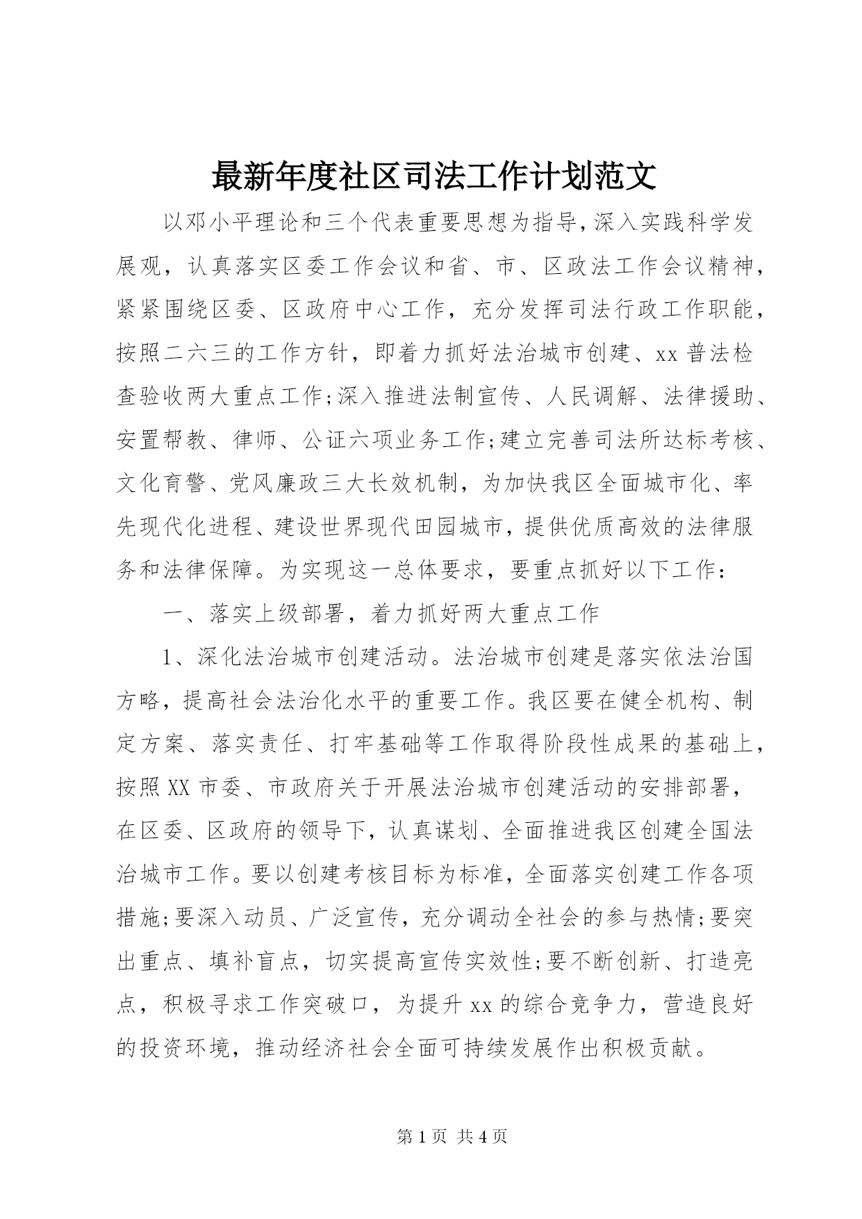 第PAGE\*Arabic\*MERGEFORMAT4页共NUMPAGES\*MERGEFORMAT4页最新年度社区司法工作计划范文以邓小平理论和三个代表重要思想为指导,深入实践科学发展观,认真落实区委工作会议和省、市、区政法工作会议精神,紧紧围绕区委、区政府中心工作,充分发挥司法行政工作职能,按照二六三的工作方针,即着力抓好法治城市创建、xx普法检查验收两大重点工作;深入推进法制宣传、人民调解、法律援助、安置帮教、律师、公证六项业务工作;建立完善司法所达标考核、文化育警、党风廉政三大长效机制