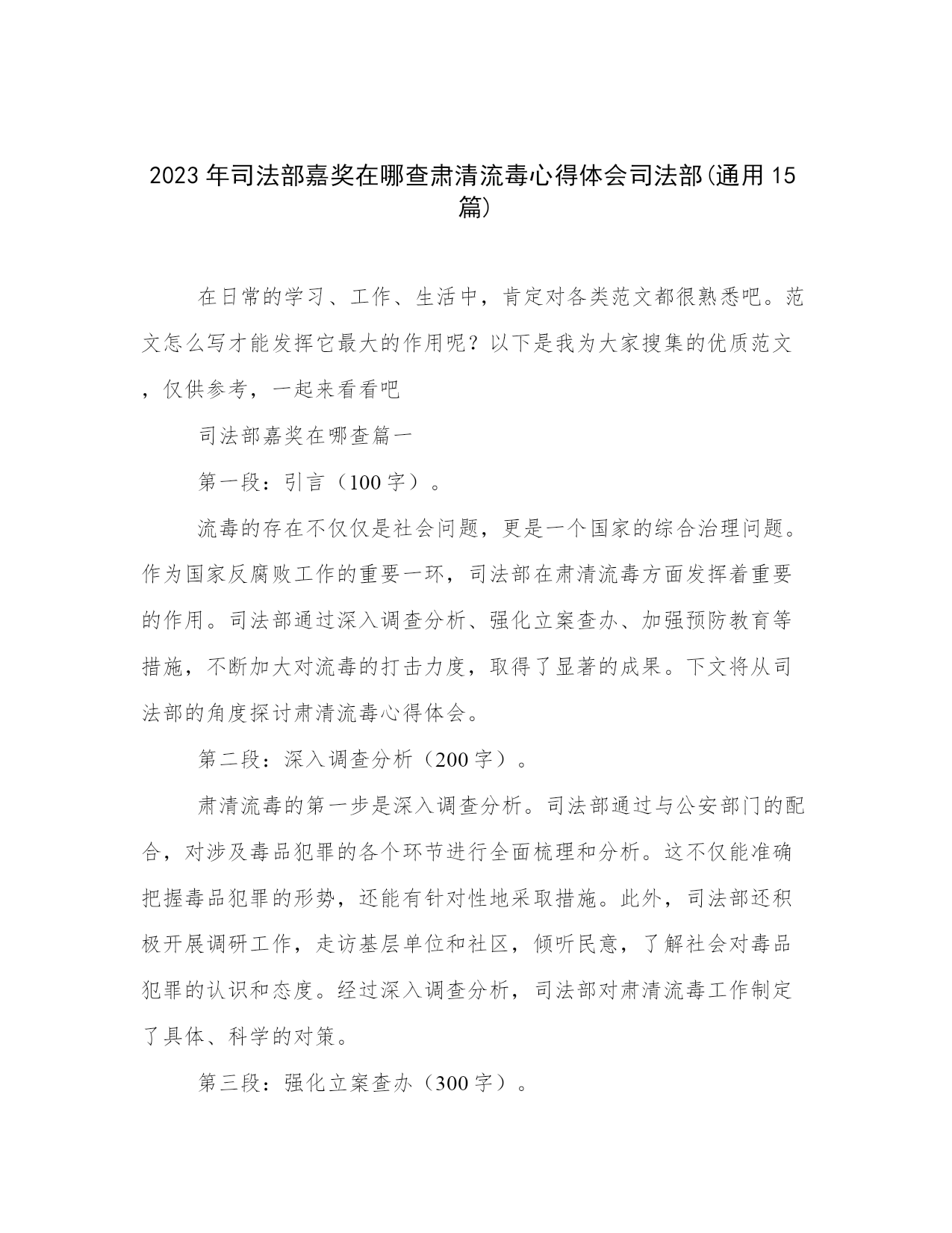 2023年司法部嘉奖在哪查肃清流毒心得体会司法部(通用15篇).docx