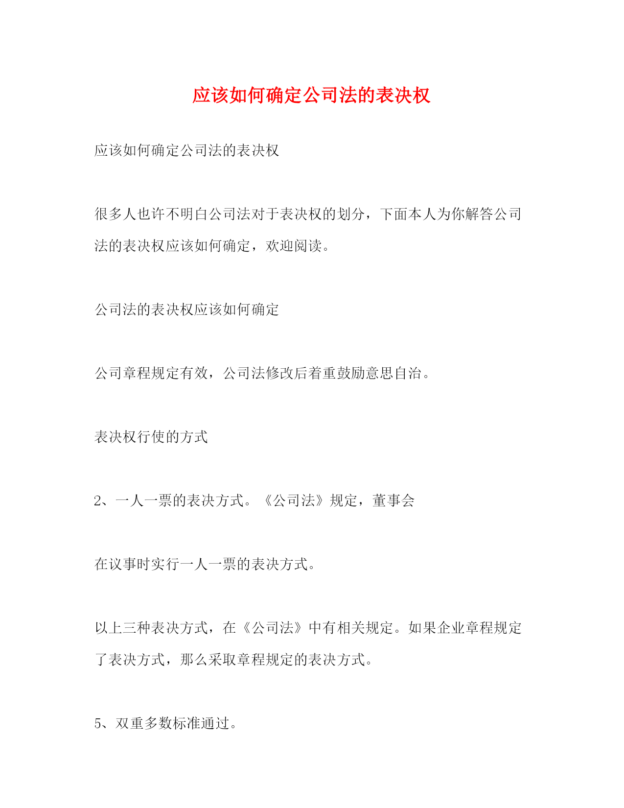 2022应该如何确定公司法的表决权.docx