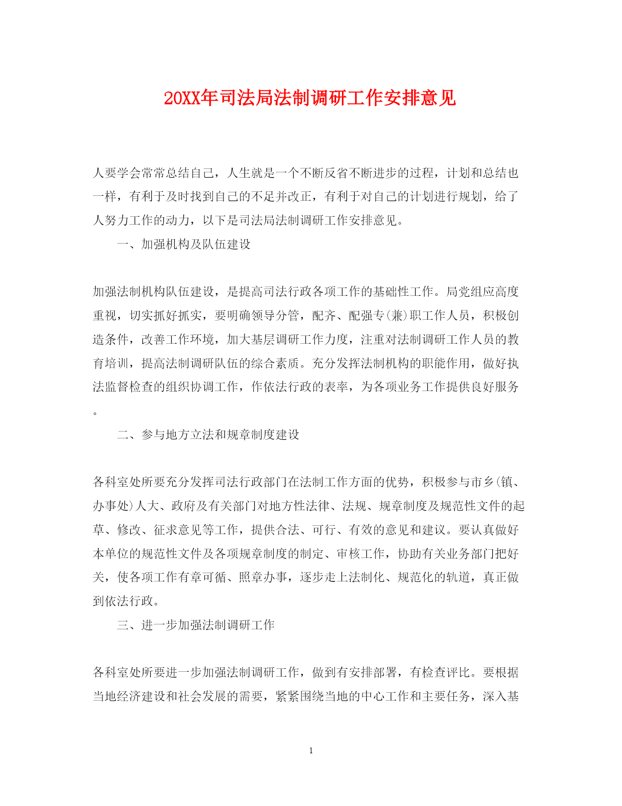 此资料由网络收集而来,如有侵权请告知上传者立即删除。资料共分享,我们负责传递知识。PAGEPAGE220XX年司法局法制调研工作安排意见人要学会常常总结自己,人生就是一个不断反省不断进步的过程,计划和总结也一样,有利于及时找到自己的不足并改正,有利于对自己的计划进行规划,给了人努力工作的动力,以下是司法局法制调研工作安排意见。一、加强机构及队伍建设加强法制机构队伍建设,是提高司法行政各项工作的基础性工作。局党组应高度重视,切实抓好抓实,要明确领导分管,配齐、配强专(兼)职工作人员,积极创造条件