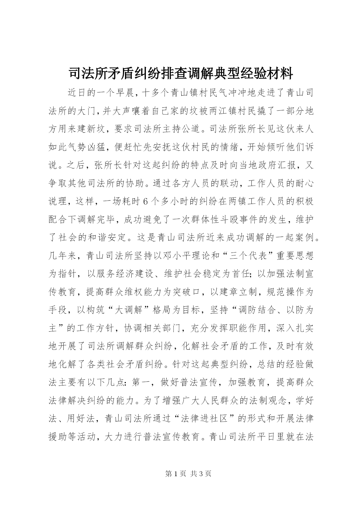司法所矛盾纠纷排查调解典型经验材料.docx