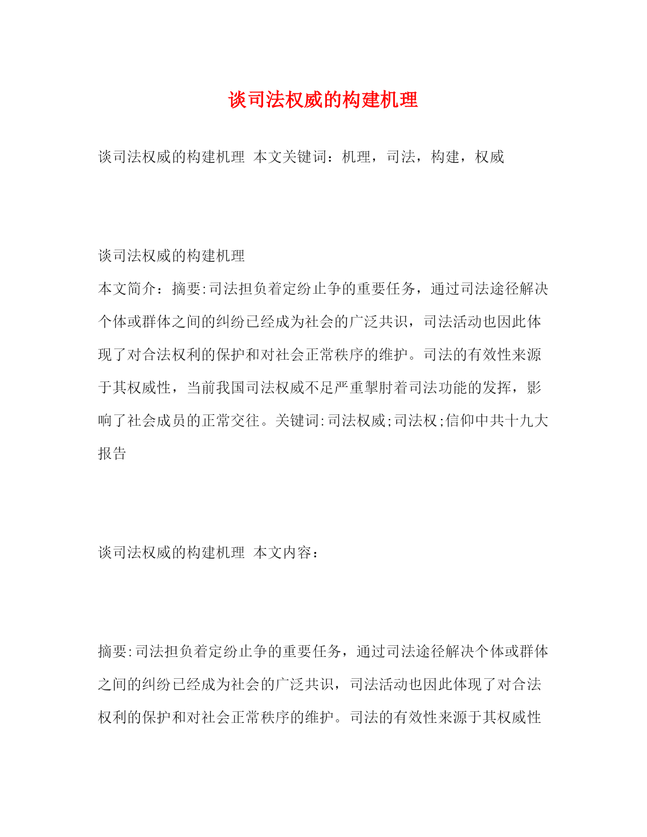 PAGE此资料由网络收集而来,如有侵权请告知上传者立即删除。资料共分享,我们负责传递知识。谈司法权威的构建机理谈司法权威的构建机理本文关键词:机理,司法,构建,权威谈司法权威的构建机理本文简介:摘要:司法担负着定纷止争的重要任务,通过司法途径解决个体或群体之间的纠纷已经成为社会的广泛共识,司法活动也因此体现了对合法权利的保护和对社会正常秩序的维护。司法的有效性来源于其权威性,当前我国司法权威不足严重掣肘着司法功能的发挥,影响了社会成员的正常交往。关键词:司法权威;司法权;信仰中共十九大报告谈司法权威