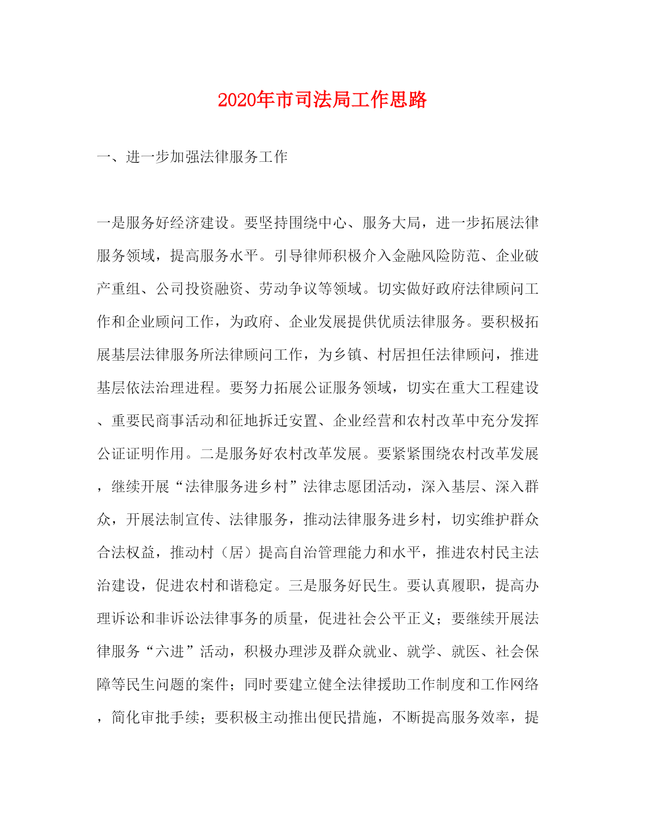 PAGE此资料由网络收集而来,如有侵权请告知上传者立即删除。资料共分享,我们负责传递知识。2020年市司法局工作思路一、进一步加强法律服务工作一是服务好经济建设。要坚持围绕中心、服务大局,进一步拓展法律服务领域,提高服务水平。引导律师积极介入金融风险防范、企业破产重组、公司投资融资、劳动争议等领域。切实做好政府法律顾问工作和企业顾问工作,为政府、企业发展提供优质法律服务。要积极拓展基层法律服务所法律顾问工作,为乡镇、村居担任法律顾问,推进基层依法治理进程。要努力拓展公证服务领域,切实在重大工程建设、