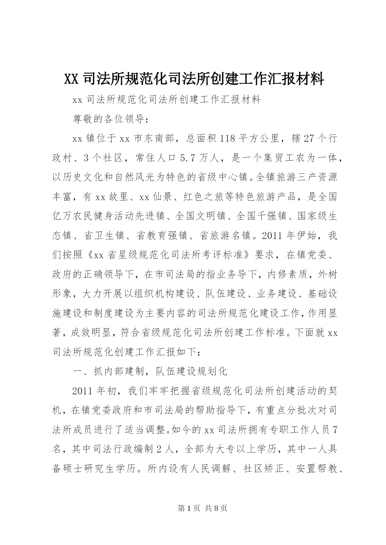 第PAGE\*Arabic\*MERGEFORMAT8页共NUMPAGES\*MERGEFORMAT8页XX司法所规范化司法所创建工作汇报材料xx司法所规范化司法所创建工作汇报材料尊敬的各位领导:xx镇位于xx市东南部,总面积118平方公里,辖27个行政村、3个社区,常住人口5.7万人,是一个集贸工农为一体,以历史文化和自然风光为特色的省级中心镇。全镇旅游三产资源丰富,有xx故里、xx仙景、红色之旅等特色旅游产品,是全国亿万农民健身活动先进镇、全国文明镇、全国千强镇、国家级生态镇、省卫生镇、省