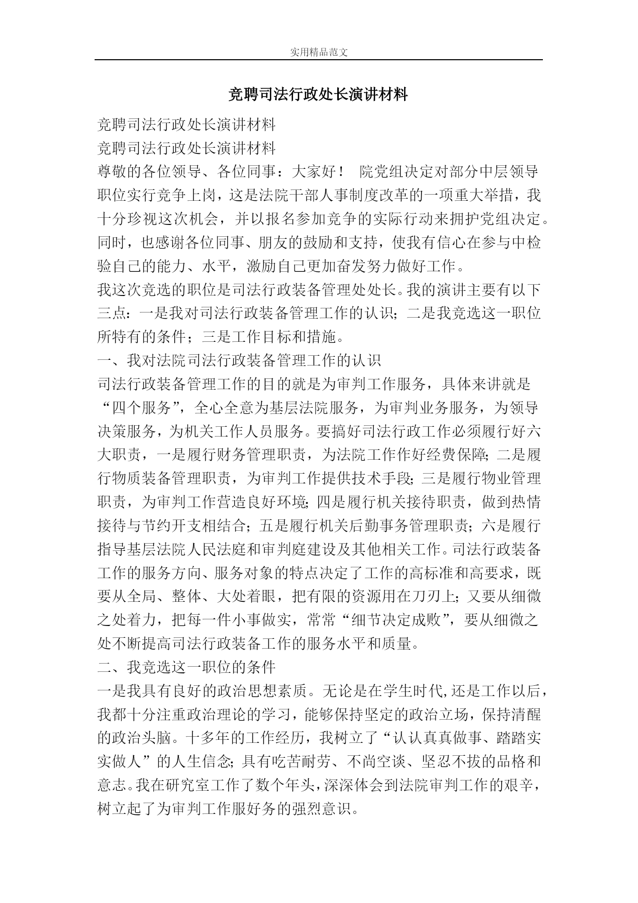 竞聘司法行政处长演讲材料-精品范文资料.doc