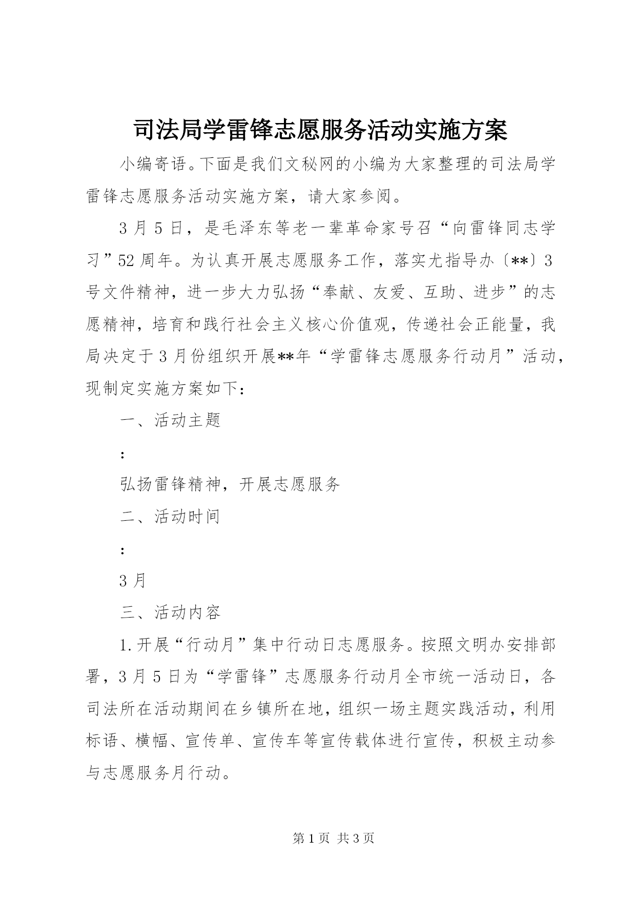 第PAGE\*Arabic\*MERGEFORMAT3页共NUMPAGES\*MERGEFORMAT3页司法局学雷锋志愿服务活动实施方案小编寄语。下面是我们文秘网的小编为大家整理的司法局学雷锋志愿服务活动实施方案,请大家参阅。3月5日,是毛泽东等老一辈革命家号召“向雷锋同志学习”52周年。为认真开展志愿服务工作,落实尤指导办〔**〕3号文件精神,进一步大力弘扬“奉献、友爱、互助、进步”的志愿精神,培育和践行社会主义核心价值观,传递社会正能量,我局决定于3月份组织开展**年“学雷锋志愿服务行动月