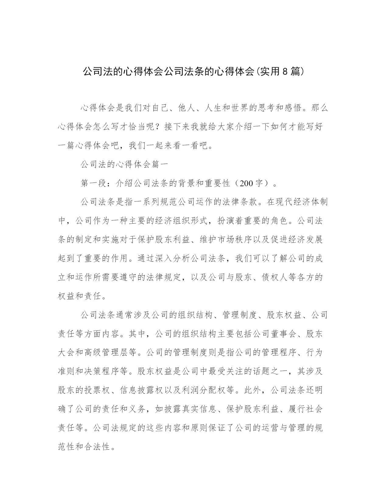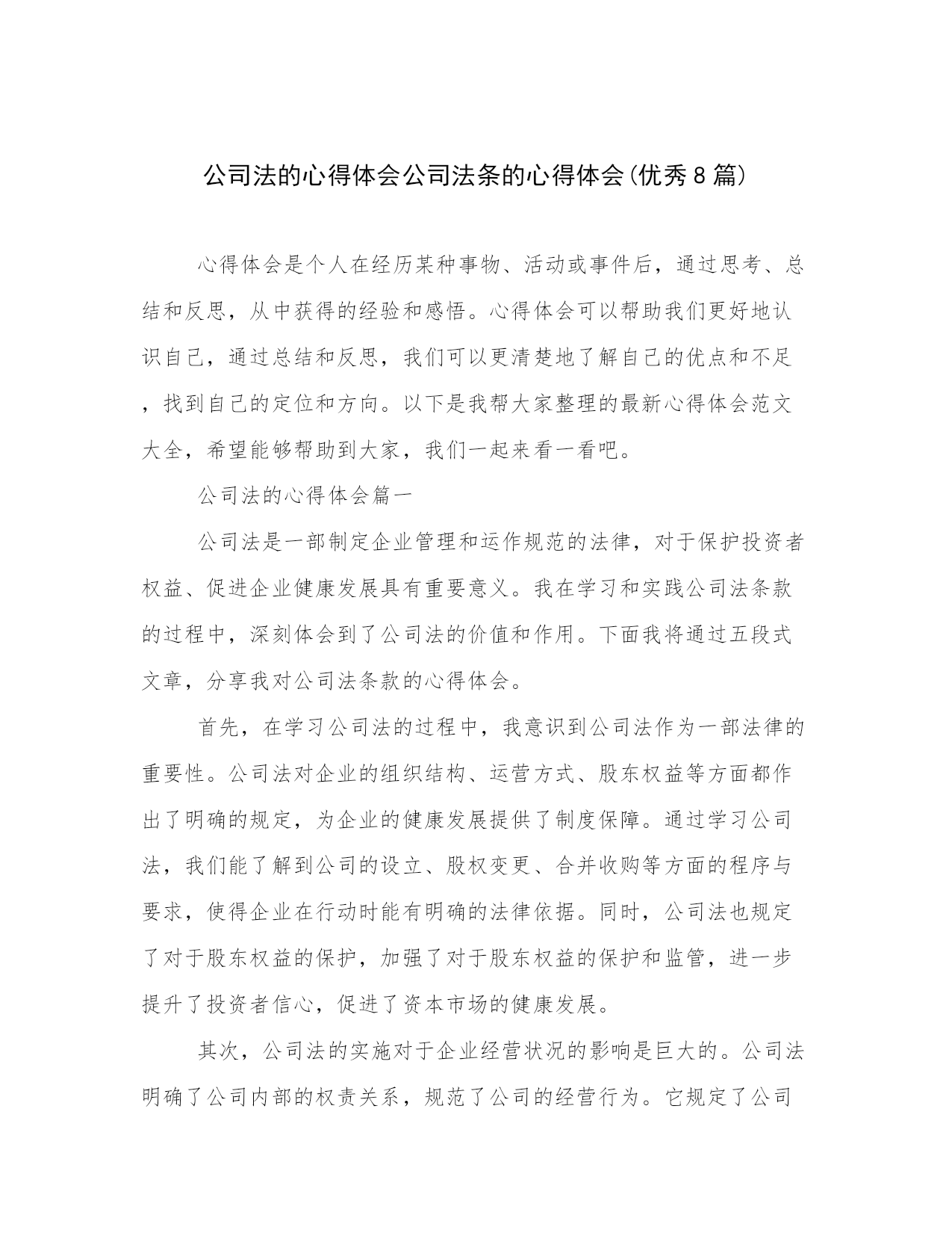 公司法的心得体会公司法条的心得体会(优秀8篇).docx