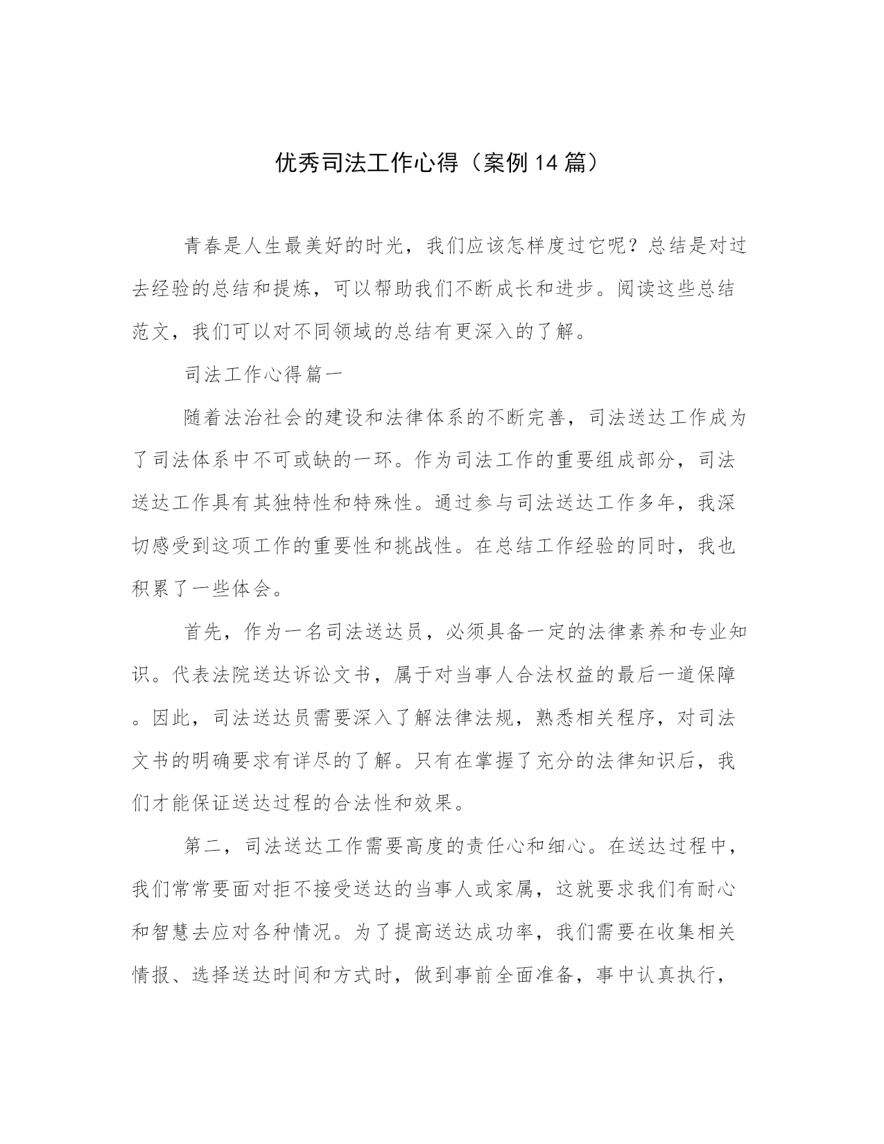 优秀司法工作心得(案例14篇).docx