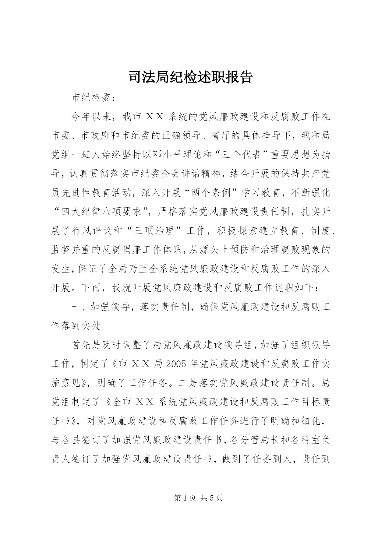 第PAGE\*Arabic\*MERGEFORMAT5页共NUMPAGES\*MERGEFORMAT5页司法局纪检述职报告市纪检委:今年以来,我市ΧΧ系统的党风廉政建设和反腐败工作在市委、市政府和市纪委的正确领导、省厅的具体指导下,我和局党组一班人始终坚持以邓小平理论和“三个代表”重要思想为指导,认真贯彻落实市纪委全会讲话精神,结合开展的保持共产党员先进性教育活动,深入开展“两个条例”学习教育,不断强化“四大纪律八项要求”,严格落实党风廉政建设责任制,扎实开展了行风评议和“三项治理”工作,积极