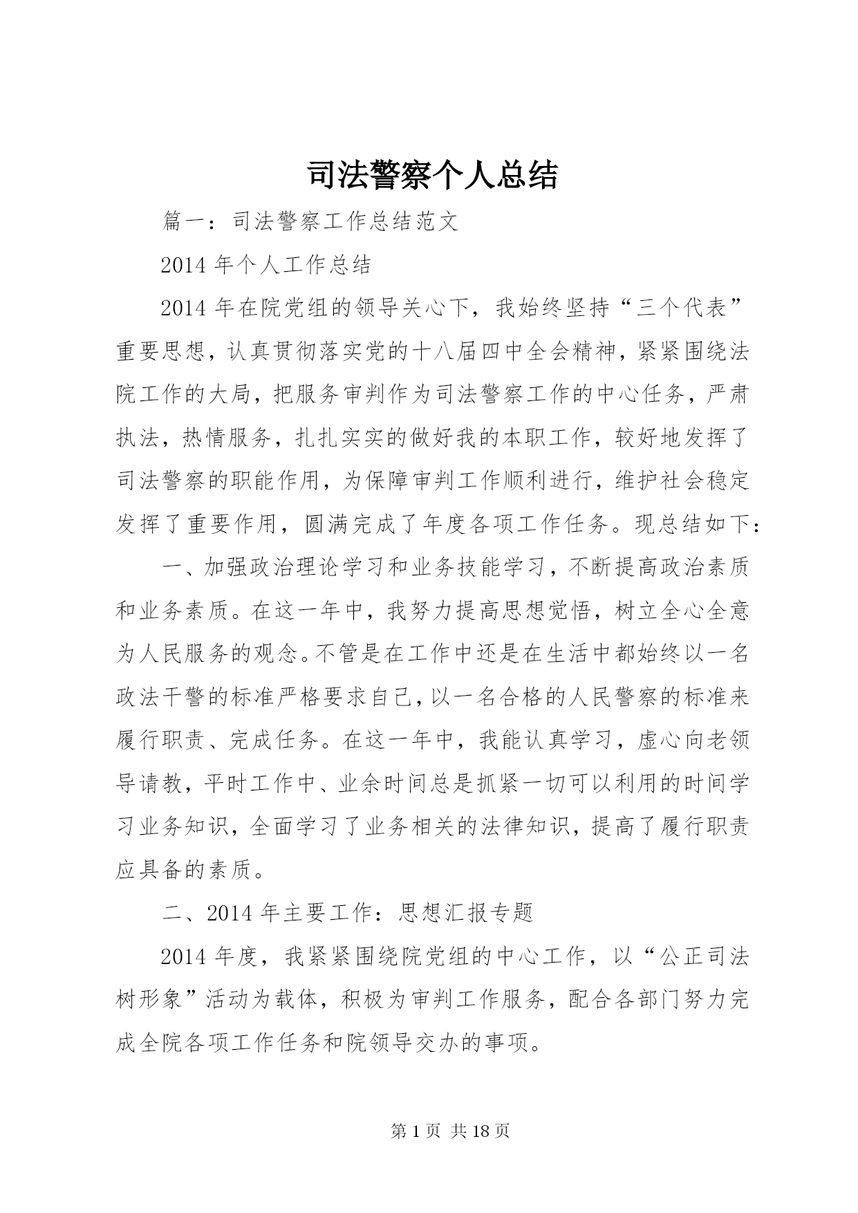 第PAGE\*Arabic\*MERGEFORMAT18页共NUMPAGES\*MERGEFORMAT18页司法警察个人总结篇一:司法警察工作总结范文2014年个人工作总结2014年在院党组的领导关心下,我始终坚持“三个代表”重要思想,认真贯彻落实党的十八届四中全会精神,紧紧围绕法院工作的大局,把服务审判作为司法警察工作的中心任务,严肃执法,热情服务,扎扎实实的做好我的本职工作,较好地发挥了司法警察的职能作用,为保障审判工作顺利进行,维护社会稳定发挥了重要作用,圆满完成了年度各项工作任务。现总