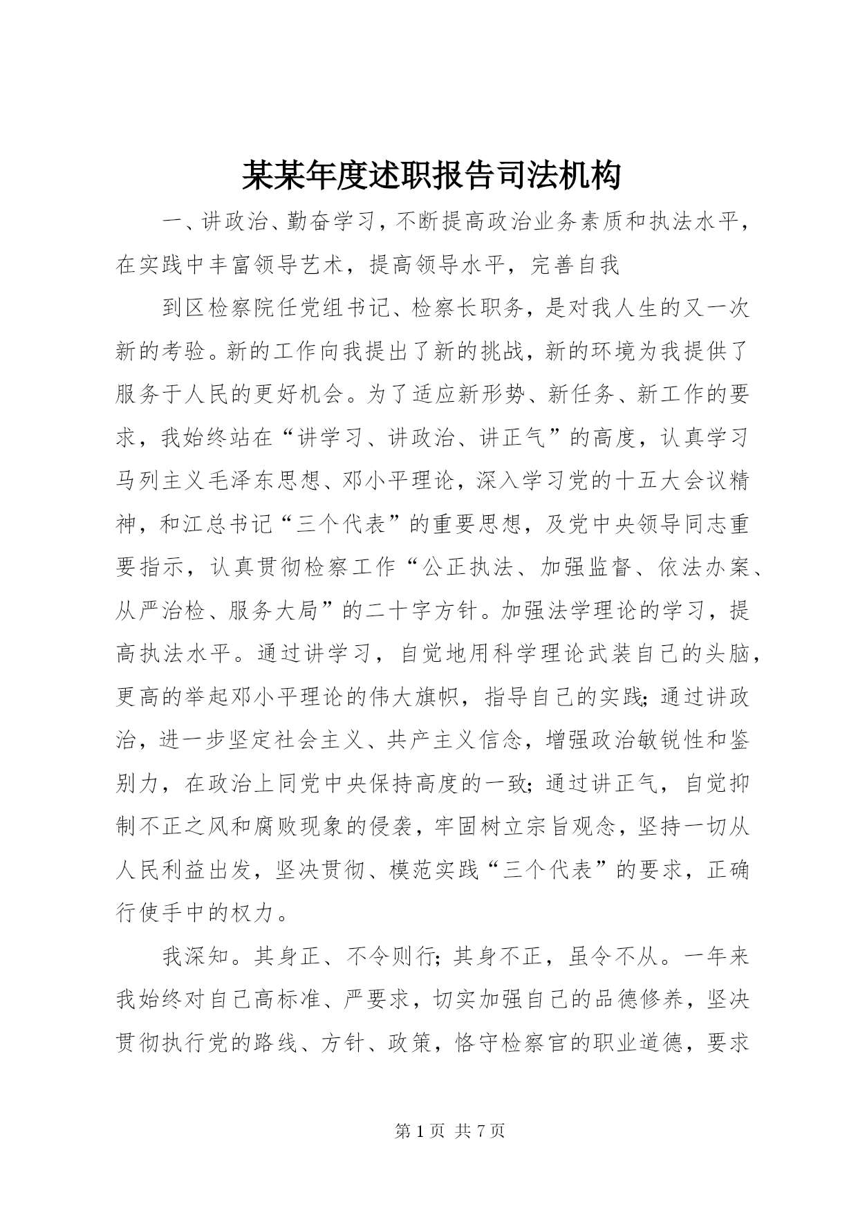 第PAGE\*Arabic\*MERGEFORMAT7页共NUMPAGES\*MERGEFORMAT7页某某年度述职报告司法机构一、讲政治、勤奋学习,不断提高政治业务素质和执法水平,在实践中丰富领导艺术,提高领导水平,完善自我到区检察院任党组书记、检察长职务,是对我人生的又一次新的考验。新的工作向我提出了新的挑战,新的环境为我提供了服务于人民的更好机会。为了适应新形势、新任务、新工作的要求,我始终站在“讲学习、讲政治、讲正气”的高度,认真学习马列主义毛泽东思想、邓小平理论,深入学习党的十五大会