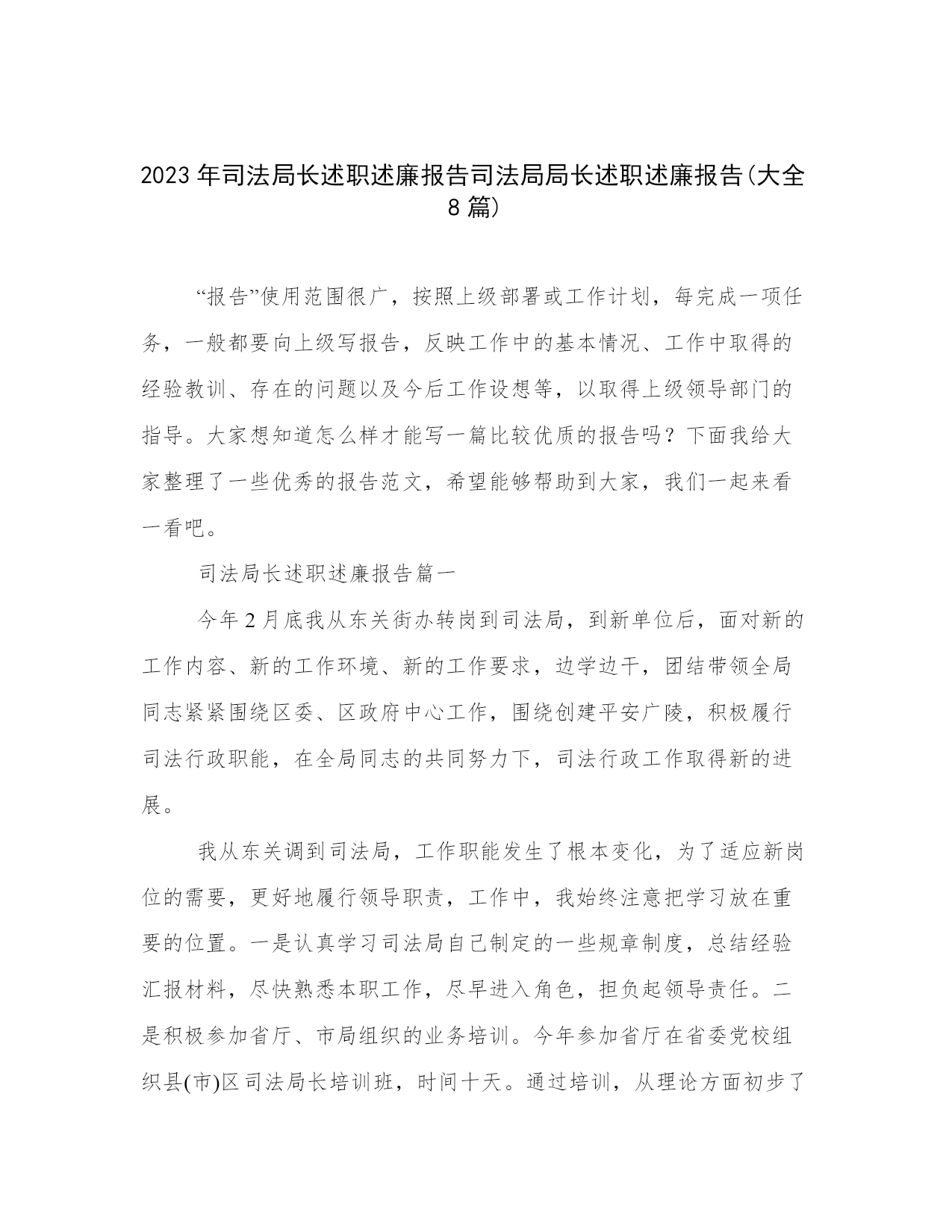 2023年司法局长述职述廉报告司法局局长述职述廉报告(大全8篇).docx