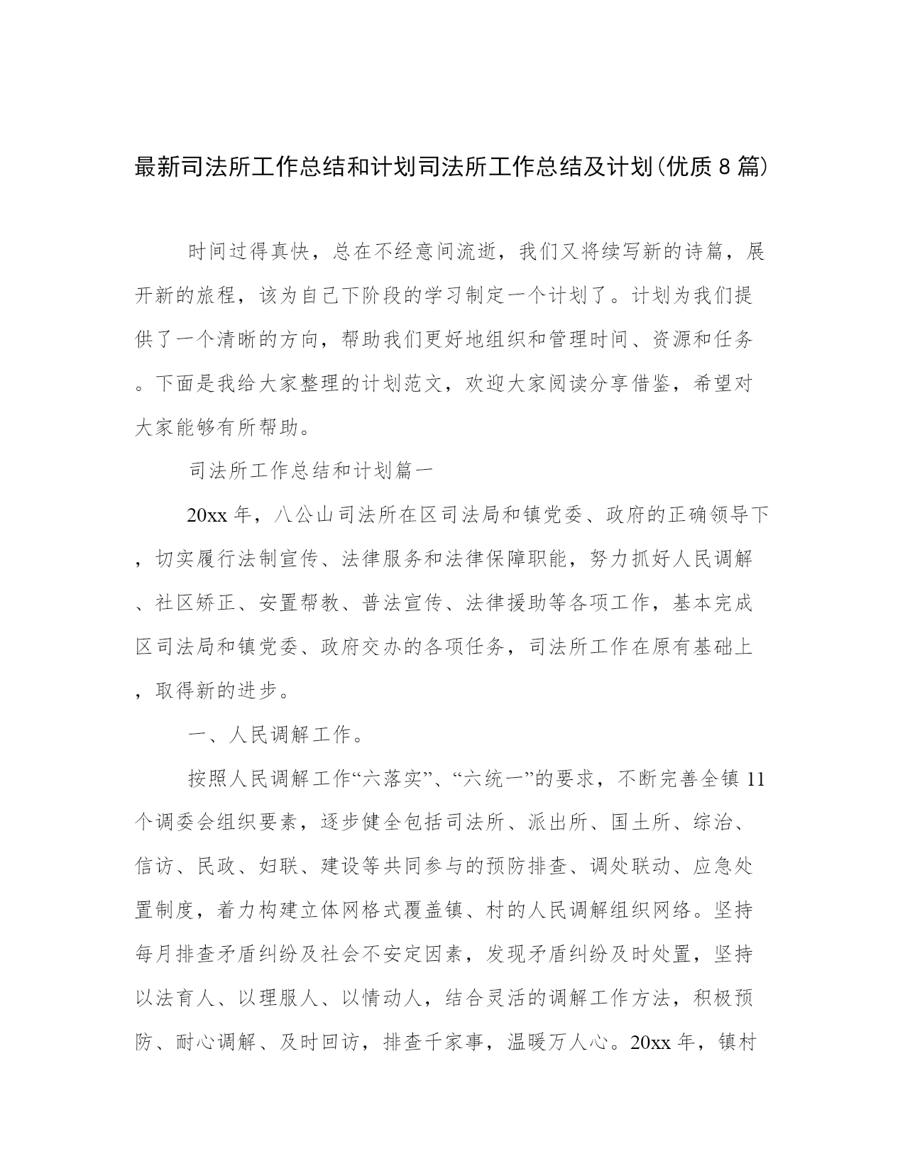最新司法所工作总结和计划司法所工作总结及计划(优质8篇).docx