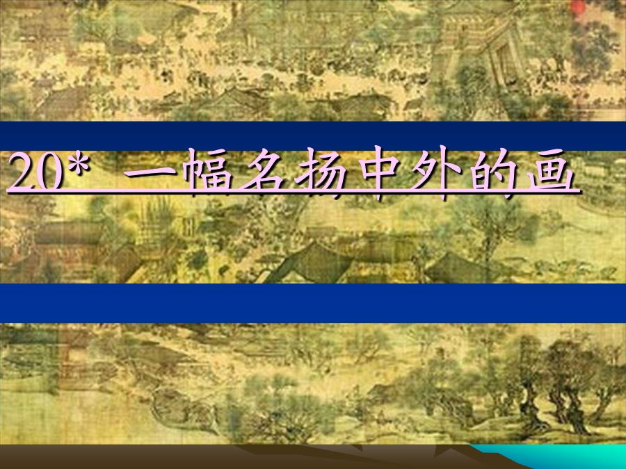 20*一幅名扬中外的画正确读出下列词语《清明上河图》已经有八百多年的历史了,现在还完整地保存在北京故宫博物院里。三百六十行,哪一行的人都画在上面了。别看画面上的人小,每个人在干什么,都能看得清清楚楚。张择端的画是多么传神啊!20*一幅名扬中外的画作者张择端北宋画家,字正道,东武(今山东诸城)人。早年游学汴京(今河南开封),后习绘画。宋徽宗时供职翰林图画院。专工界画宫室,尤擅绘舟车、市肆、桥梁、街道、城郭。存世作品《清明上河图》卷,描绘当年汴京近郊在清明时节社会各阶层的生活景象,真实生动,是一件具有重要历史