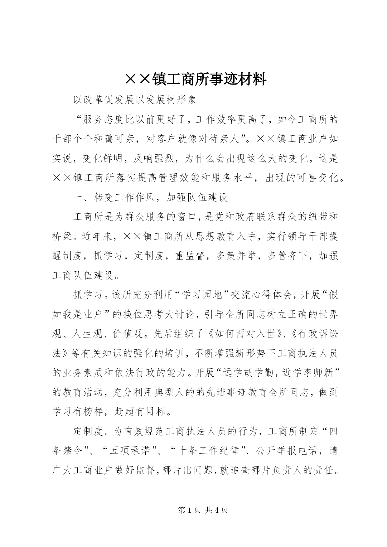 第PAGE\*Arabic\*MERGEFORMAT4页共NUMPAGES\*MERGEFORMAT4页××镇工商所事迹材料以改革促发展以发展树形象“服务态度比以前更好了,工作效率更高了,如今工商所的干部个个和蔼可亲,对客户就像对待亲人”。××镇工商业户如实说,变化鲜明,反响强烈,为什么会出现这么大的变化,这是××镇工商所落实提高管理效能和服务水平,出现的可喜变化。一、转变工作作风,加强队伍建设工商所是为群众服务的窗口,是党和政府联系群众的纽带和桥梁。近年来,××镇工商所从思想教育入手,实行领