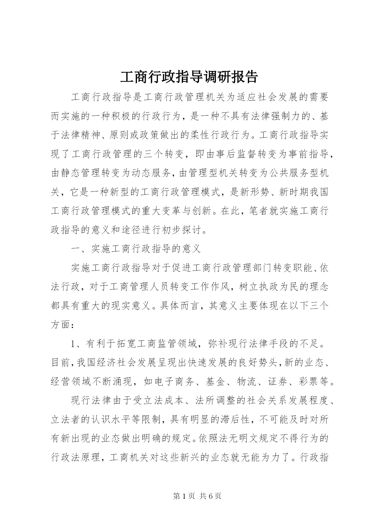 第PAGE\*Arabic\*MERGEFORMAT6页共NUMPAGES\*MERGEFORMAT6页工商行政指导调研报告工商行政指导是工商行政管理机关为适应社会发展的需要而实施的一种积极的行政行为,是一种不具有法律强制力的、基于法律精神、原则或政策做出的柔性行政行为。工商行政指导实现了工商行政管理的三个转变,即由事后监督转变为事前指导,由静态管理转变为动态服务,由管理型机关转变为公共服务型机关,它是一种新型的工商行政管理模式,是新形势、新时期我国工商行政管理模式的重大变革与创新。在此,笔者