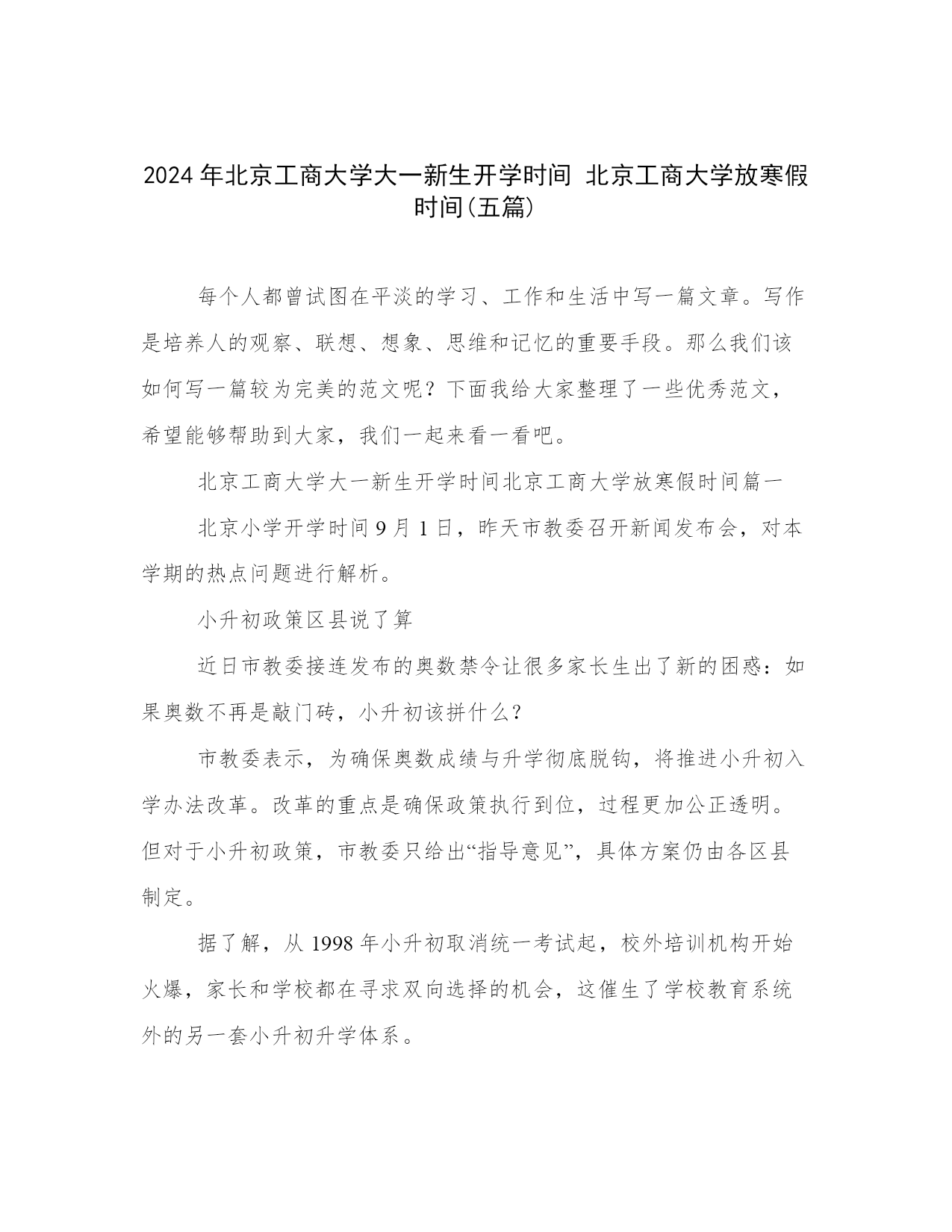 2024年北京工商大学大一新生开学时间 北京工商大学放寒假时间(五篇).docx
