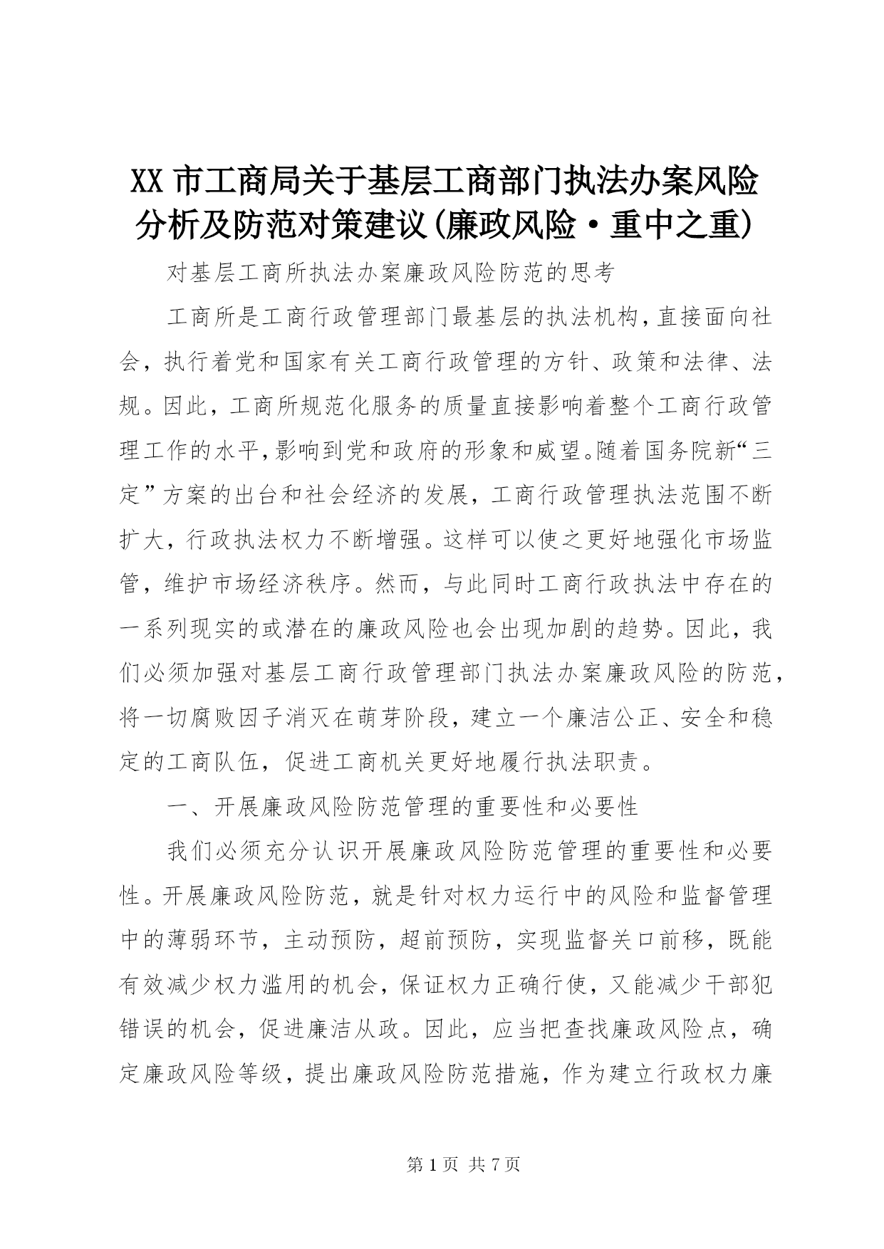 XX市工商局关于基层工商部门执法办案风险分析及防范对策建议(廉政风险·重中之重).docx
