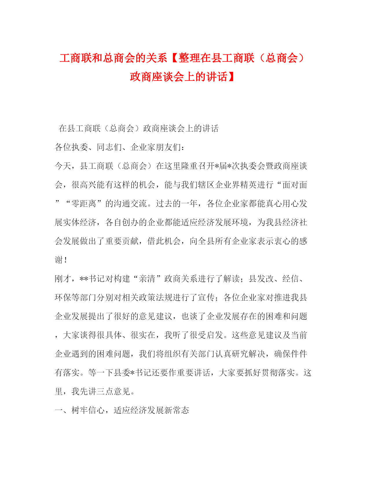 2022工商联和总商会的关系【整理在县工商联(总商会)政商座谈会上的讲话】.docx
