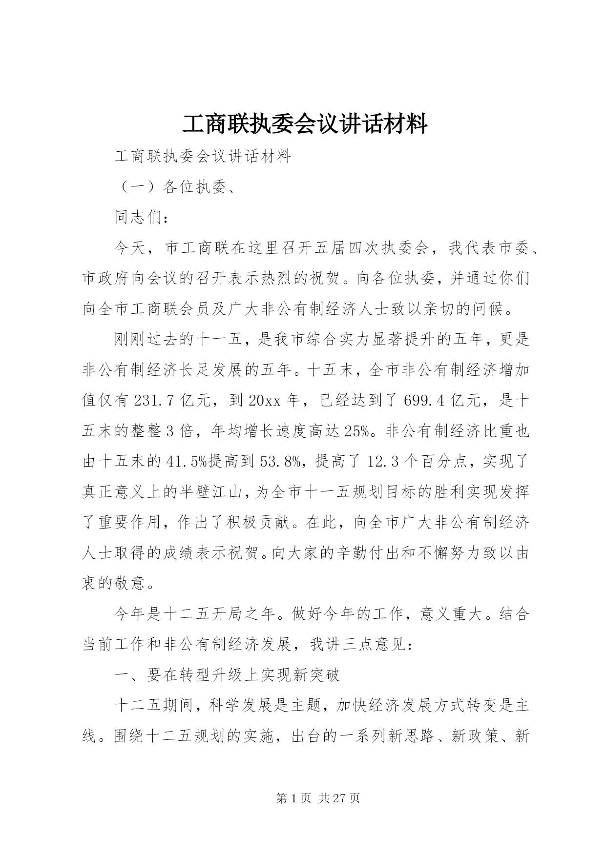 第PAGE\*Arabic\*MERGEFORMAT27页共NUMPAGES\*MERGEFORMAT27页工商联执委会议讲话材料工商联执委会议讲话材料(一)各位执委、同志们:今天,市工商联在这里召开五届四次执委会,我代表市委、市政府向会议的召开表示热烈的祝贺。向各位执委,并通过你们向全市工商联会员及广大非公有制经济人士致以亲切的问候。刚刚过去的十一五,是我市综合实力显著提升的五年,更是非公有制经济长足发展的五年。十五末,全市非公有制经济增加值仅有231.7亿元,到20xx年,已经达到了699