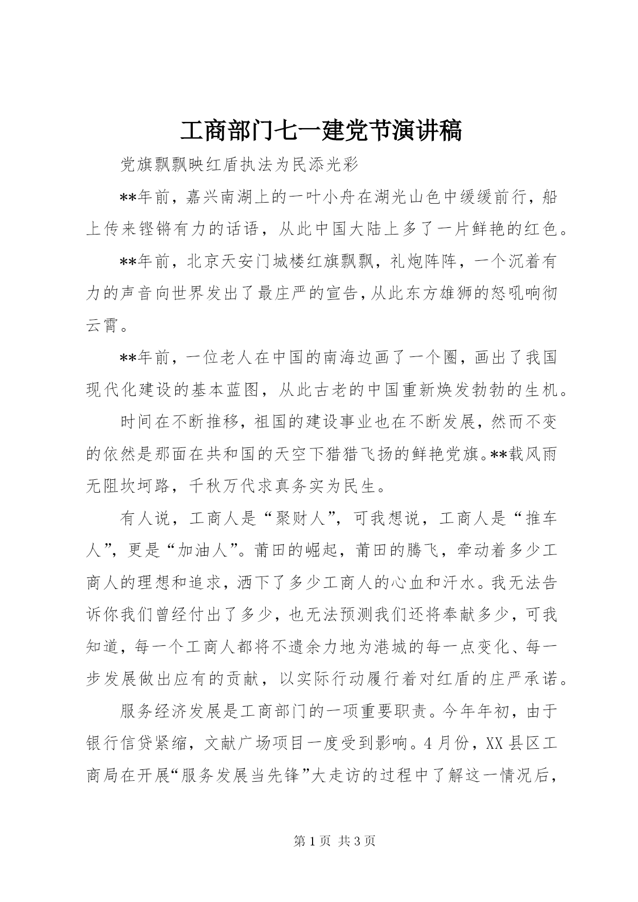 第PAGE\*Arabic\*MERGEFORMAT3页共NUMPAGES\*MERGEFORMAT3页工商部门七一建党节演讲稿党旗飘飘映红盾执法为民添光彩**年前,嘉兴南湖上的一叶小舟在湖光山色中缓缓前行,船上传来铿锵有力的话语,从此中国大陆上多了一片鲜艳的红色。**年前,北京天安门城楼红旗飘飘,礼炮阵阵,一个沉着有力的声音向世界发出了最庄严的宣告,从此东方雄狮的怒吼响彻云霄。**年前,一位老人在中国的南海边画了一个圈,画出了我国现代化建设的基本蓝图,从此古老的中国重新焕发勃勃的生机。时间在
