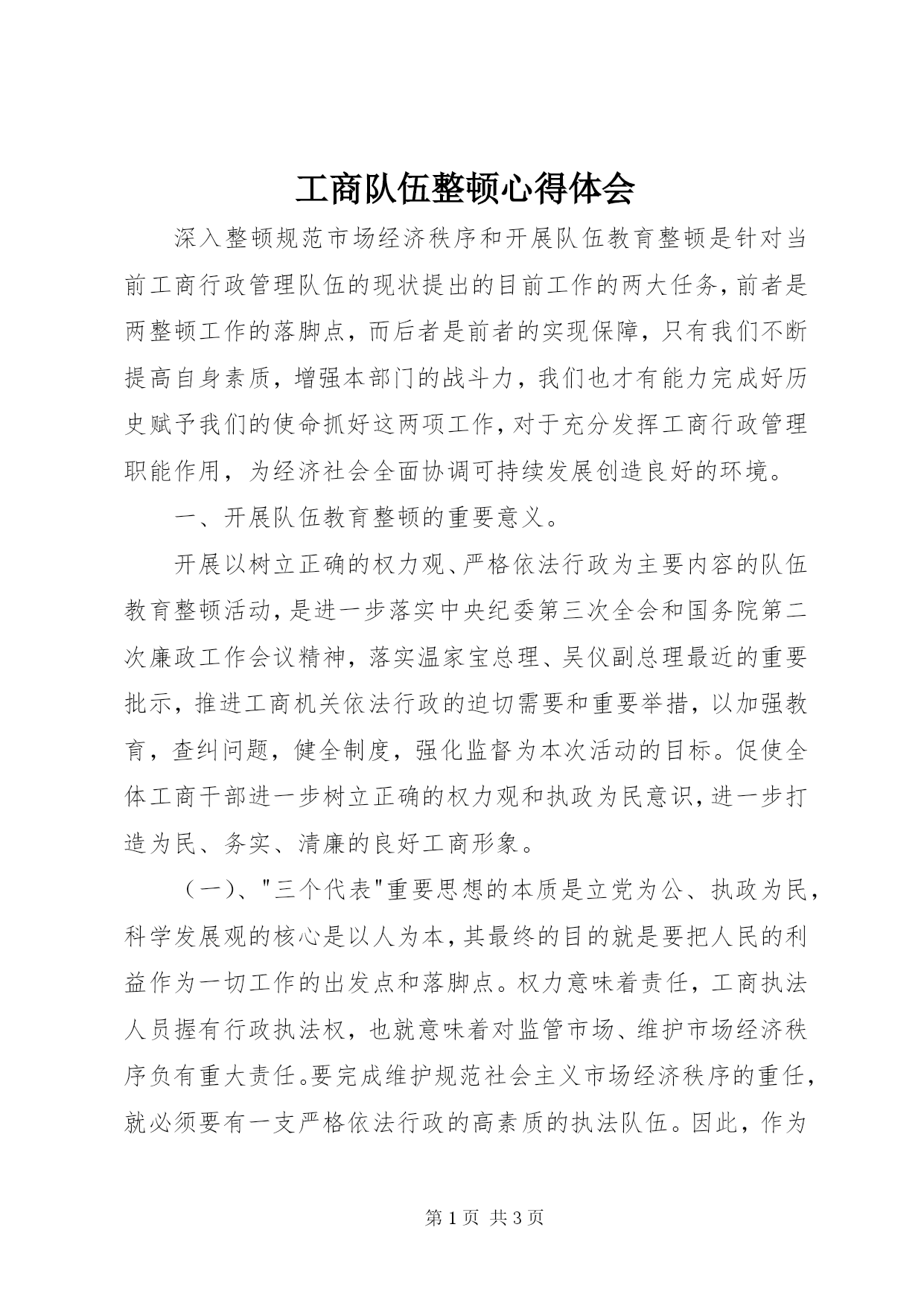 第PAGE\*Arabic\*MERGEFORMAT3页共NUMPAGES\*MERGEFORMAT3页工商队伍整顿心得体会深入整顿规范市场经济秩序和开展队伍教育整顿是针对当前工商行政管理队伍的现状提出的目前工作的两大任务,前者是两整顿工作的落脚点,而后者是前者的实现保障,只有我们不断提高自身素质,增强本部门的战斗力,我们也才有能力完成好历史赋予我们的使命抓好这两项工作,对于充分发挥工商行政管理职能作用,为经济社会全面协调可持续发展创造良好的环境。一、开展队伍教育整顿的重要意义。开展以树立正确