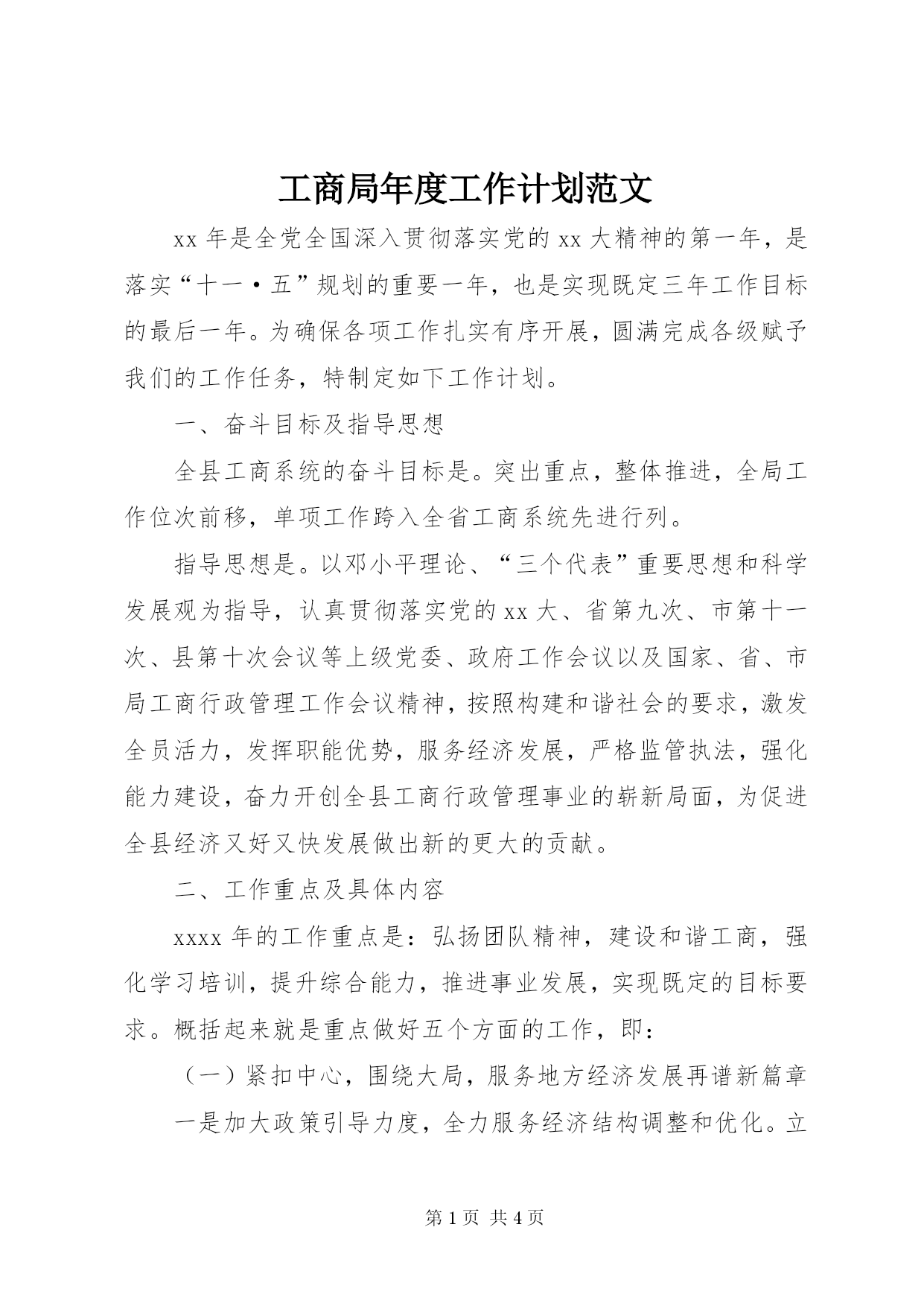 第PAGE\*Arabic\*MERGEFORMAT4页共NUMPAGES\*MERGEFORMAT4页工商局年度工作计划范文xx年是全党全国深入贯彻落实党的xx大精神的第一年,是落实“十一·五”规划的重要一年,也是实现既定三年工作目标的最后一年。为确保各项工作扎实有序开展,圆满完成各级赋予我们的工作任务,特制定如下工作计划。一、奋斗目标及指导思想全县工商系统的奋斗目标是。突出重点,整体推进,全局工作位次前移,单项工作跨入全省工商系统先进行列。指导思想是。以邓小平理论、“三个代表”重要思想和科