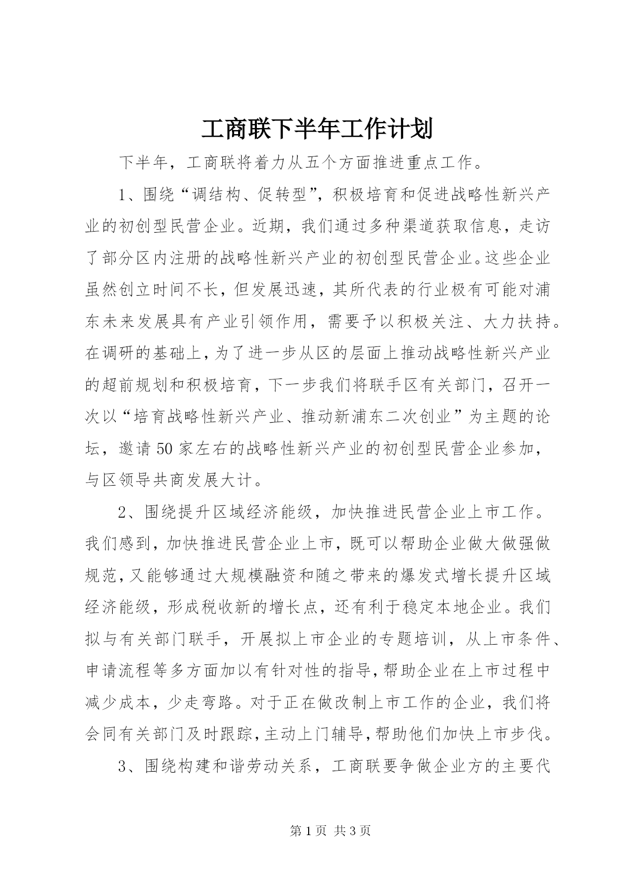 第PAGE\*Arabic\*MERGEFORMAT3页共NUMPAGES\*MERGEFORMAT3页工商联下半年工作计划下半年,工商联将着力从五个方面推进重点工作。1、围绕“调结构、促转型”,积极培育和促进战略性新兴产业的初创型民营企业。近期,我们通过多种渠道获取信息,走访了部分区内注册的战略性新兴产业的初创型民营企业。这些企业虽然创立时间不长,但发展迅速,其所代表的行业极有可能对浦东未来发展具有产业引领作用,需要予以积极关注、大力扶持。在调研的基础上,为了进一步从区的层面上推动战略性新兴