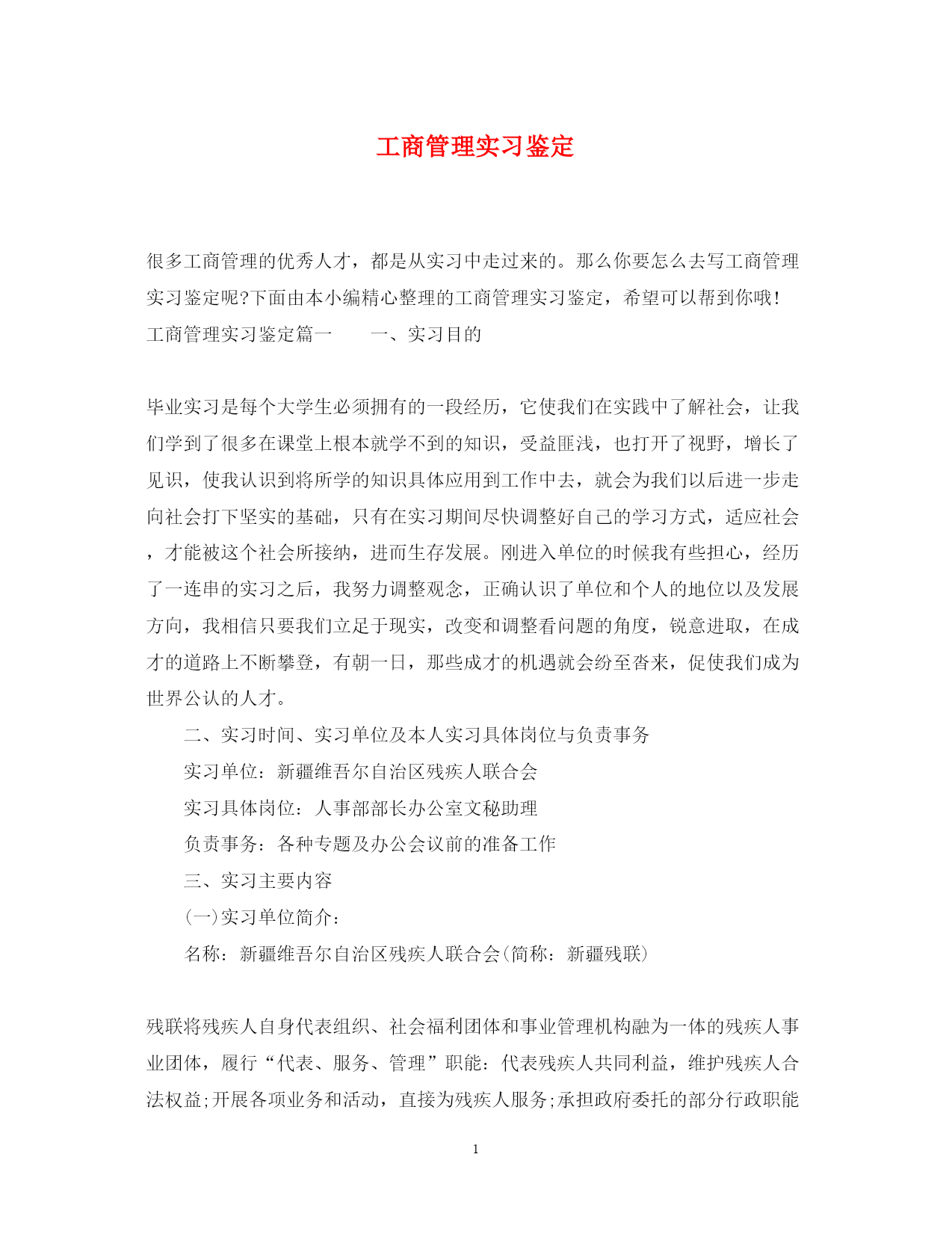 此资料由网络收集而来,如有侵权请告知上传者立即删除。资料共分享,我们负责传递知识。PAGEPAGE14工商管理实习鉴定很多工商管理的优秀人才,都是从实习中走过来的。那么你要怎么去写工商管理实习鉴定呢?下面由本小编精心整理的工商管理实习鉴定,希望可以帮到你哦!工商管理实习鉴定篇一一、实习目的毕业实习是每个大学生必须拥有的一段经历,它使我们在实践中了解社会,让我们学到了很多在课堂上根本就学不到的知识,受益匪浅,也打开了视野,增长了见识,使我认识到将所学的知识具体应用到工作中去,就会为我们以后进一步
