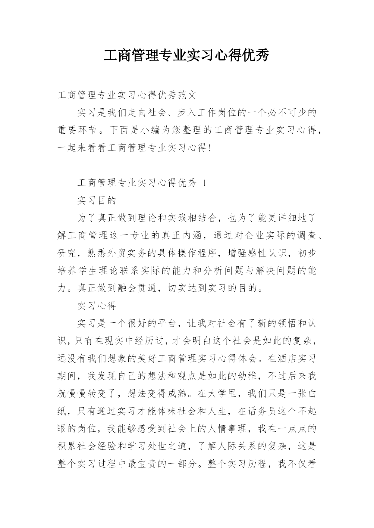 工商管理专业实习心得优秀工商管理专业实习心得优秀范文实习是我们走向社会、步入工作岗位的一个必不可少的重要环节。下面是小编为您整理的工商管理专业实习心得,一起来看看工商管理专业实习心得!工商管理专业实习心得优秀1实习目的为了真正做到理论和实践相结合,也为了能更详细地了解工商管理这一专业的真正内涵,通过对企业实际的调查、研究,熟悉外贸实务的具体操作程序,增强感性认识,初步培养学生理论联系实际的能力和分析问题与解决问题的能力。真正做到融会贯通,切实达到实习的目的。实习心得实习是一个很好的平台,让我对社会有了新的