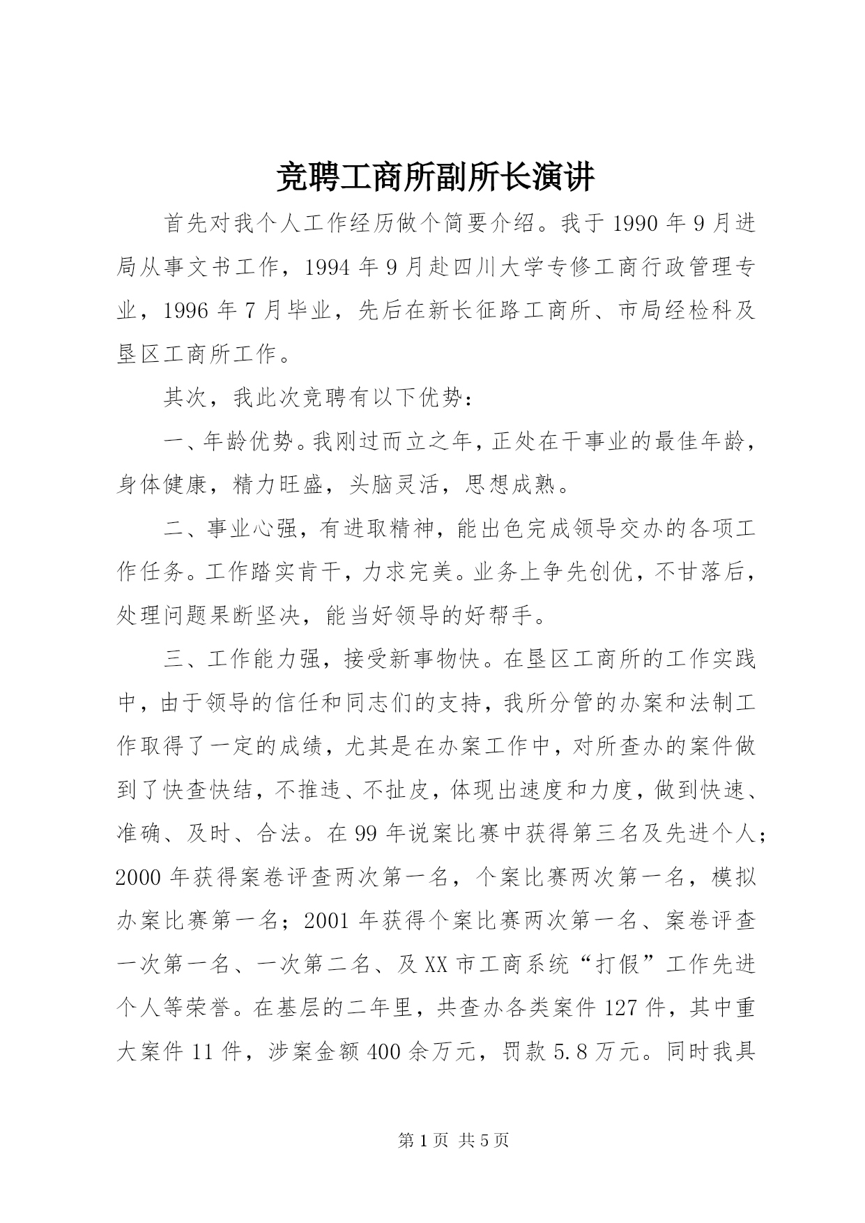 第PAGE\*Arabic\*MERGEFORMAT5页共NUMPAGES\*MERGEFORMAT5页竞聘工商所副所长演讲首先对我个人工作经历做个简要介绍。我于1990年9月进局从事文书工作,1994年9月赴四川大学专修工商行政管理专业,1996年7月毕业,先后在新长征路工商所、市局经检科及垦区工商所工作。其次,我此次竞聘有以下优势:一、年龄优势。我刚过而立之年,正处在干事业的最佳年龄,身体健康,精力旺盛,头脑灵活,思想成熟。二、事业心强,有进取精神,能出色完成领导交办的各项工作任务。工作踏