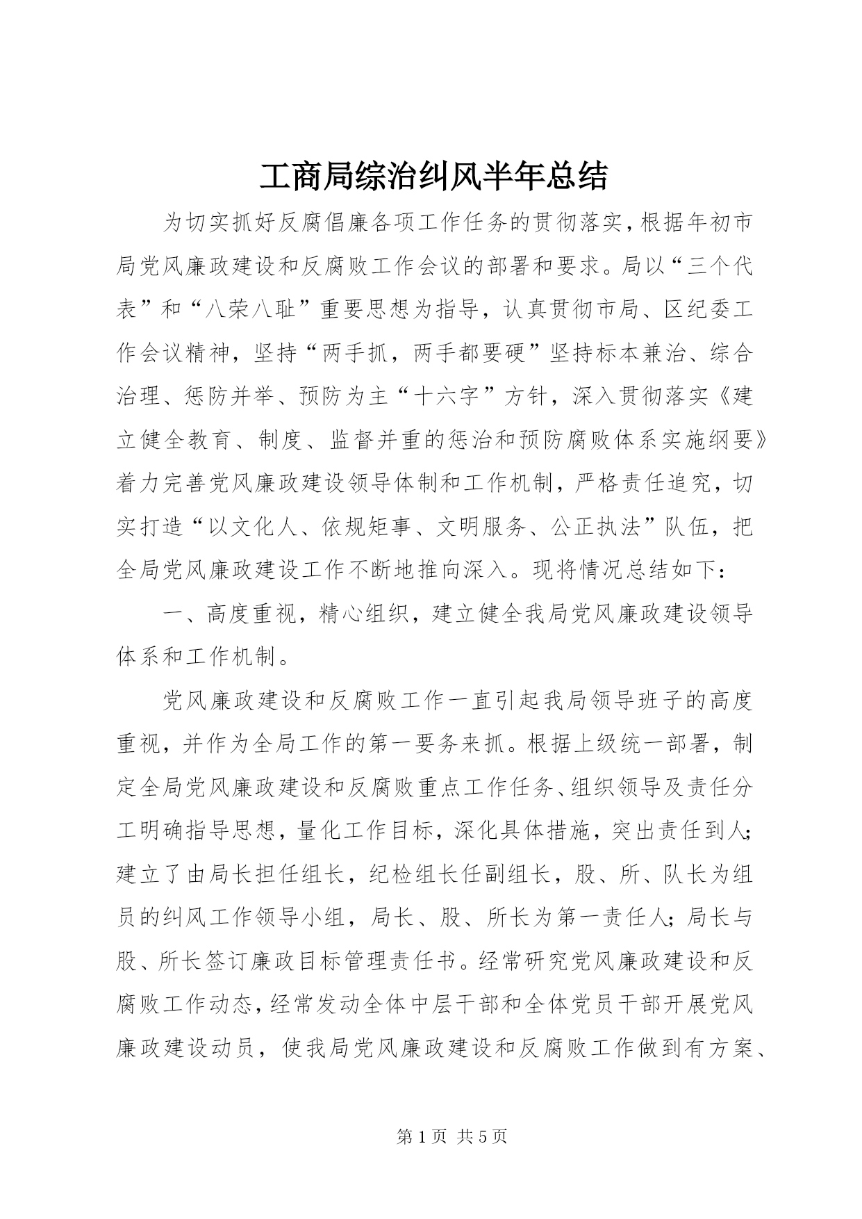 第PAGE\*Arabic\*MERGEFORMAT5页共NUMPAGES\*MERGEFORMAT5页工商局综治纠风半年总结为切实抓好反腐倡廉各项工作任务的贯彻落实,根据年初市局党风廉政建设和反腐败工作会议的部署和要求。局以“三个代表”和“八荣八耻”重要思想为指导,认真贯彻市局、区纪委工作会议精神,坚持“两手抓,两手都要硬”坚持标本兼治、综合治理、惩防并举、预防为主“十六字”方针,深入贯彻落实《建立健全教育、制度、监督并重的惩治和预防腐败体系实施纲要》着力完善党风廉政建设领导体制和工作机制,