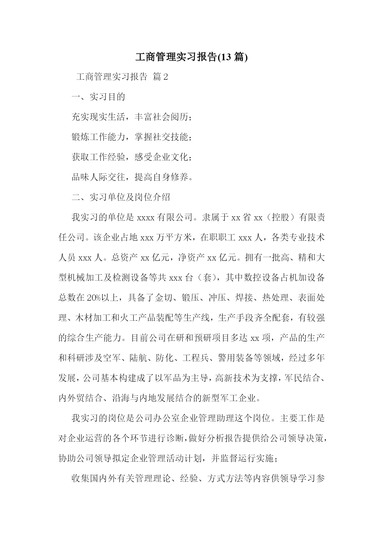 工商管理实习报告(13篇)工商管理实习报告篇2一、实习目的充实现实生活,丰富社会阅历;锻炼工作能力,掌握社交技能;获取工作经验,感受企业文化;品味人际交往,提高自身修养。二、实习单位及岗位介绍我实习的单位是xxxx有限公司。隶属于xx省xx(控股)有限责任公司。该企业占地xxx万平方米,在职职工xxx人,各类专业技术人员xxx人。总资产xx亿元,净资产xx亿元。拥有一批高、精和大型机械加工及检测设备等共xxx台(套),其中数控设备占机加设备总数在20%以上,具备了金切、锻压、冲压、焊接、热处理、表面处理、