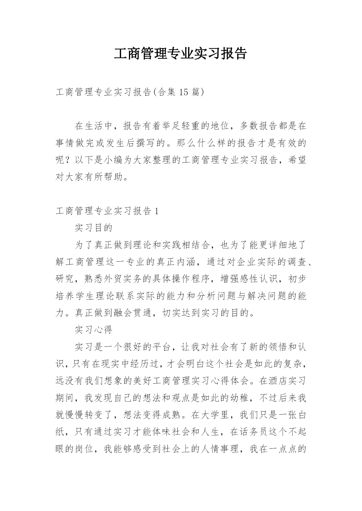 工商管理专业实习报告工商管理专业实习报告(合集15篇)在生活中,报告有着举足轻重的地位,多数报告都是在事情做完或发生后撰写的。那么什么样的报告才是有效的呢?以下是小编为大家整理的工商管理专业实习报告,希望对大家有所帮助。工商管理专业实习报告1实习目的为了真正做到理论和实践相结合,也为了能更详细地了解工商管理这一专业的真正内涵,通过对企业实际的调查、研究,熟悉外贸实务的具体操作程序,增强感性认识,初步培养学生理论联系实际的能力和分析问题与解决问题的能力。真正做到融会贯通,切实达到实习的目的。实习心得实习是一