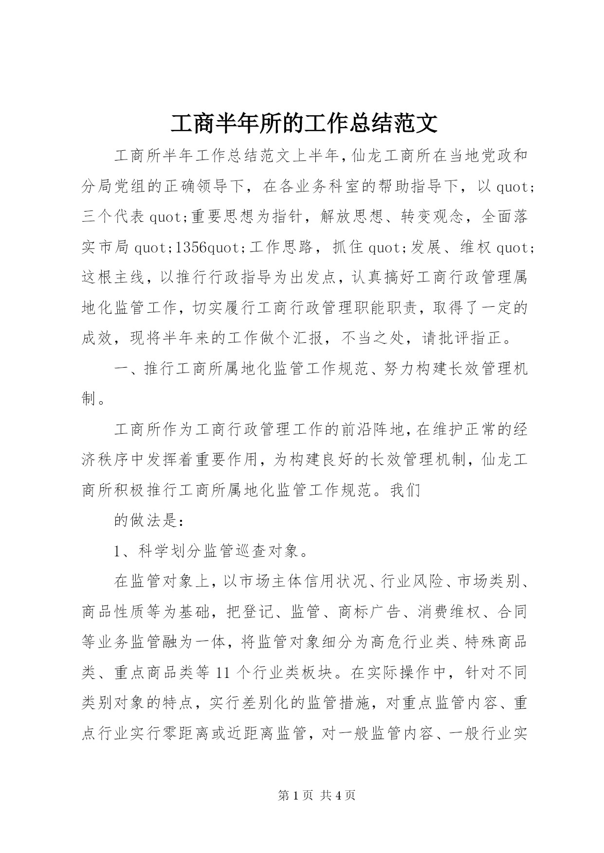 第PAGE\*Arabic\*MERGEFORMAT4页共NUMPAGES\*MERGEFORMAT4页工商半年所的工作总结范文工商所半年工作总结范文上半年,仙龙工商所在当地党政和分局党组的正确领导下,在各业务科室的帮助指导下,以quot;三个代表quot;重要思想为指针,解放思想、转变观念,全面落实市局quot;1356quot;工作思路,抓住quot;发展、维权quot;这根主线,以推行行政指导为出发点,认真搞好工商行政管理属地化监管工作,切实履行工商行政管理职能职责,取得了一定的成效,现