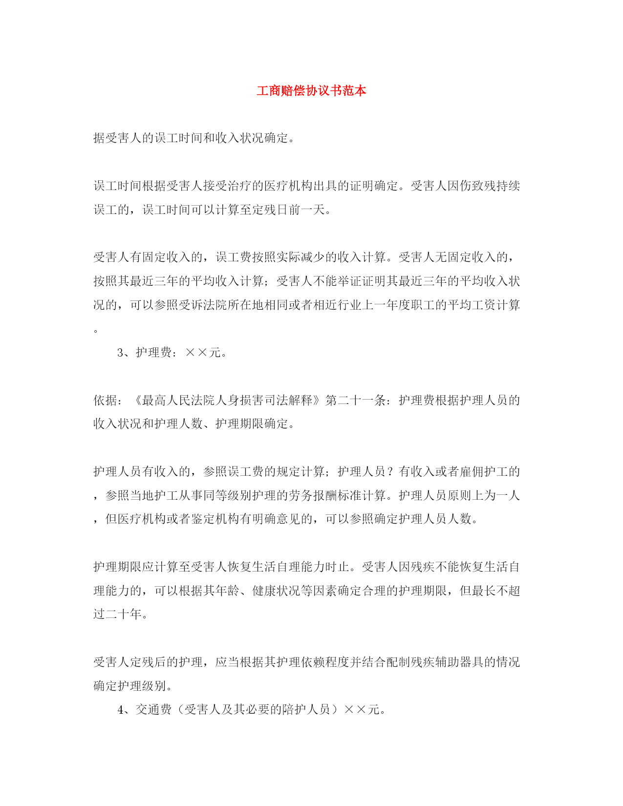 此资料由网络收集而来,如有侵权请告知上传者立即删除。资料共分享,我们负责传递知识。工商赔偿协议书范本据受害人的误工时间和收入状况确定。误工时间根据受害人接受治疗的医疗机构出具的证明确定。受害人因伤致残持续误工的,误工时间可以计算至定残日前一天。受害人有固定收入的,误工费按照实际减少的收入计算。受害人无固定收入的,按照其最近三年的平均收入计算;受害人不能举证证明其最近三年的平均收入状况的,可以参照受诉法院所在地相同或者相近行业上一年度职工的平均工资计算。3、护理费:××元。依据:《最高人民法院人身损害司法解