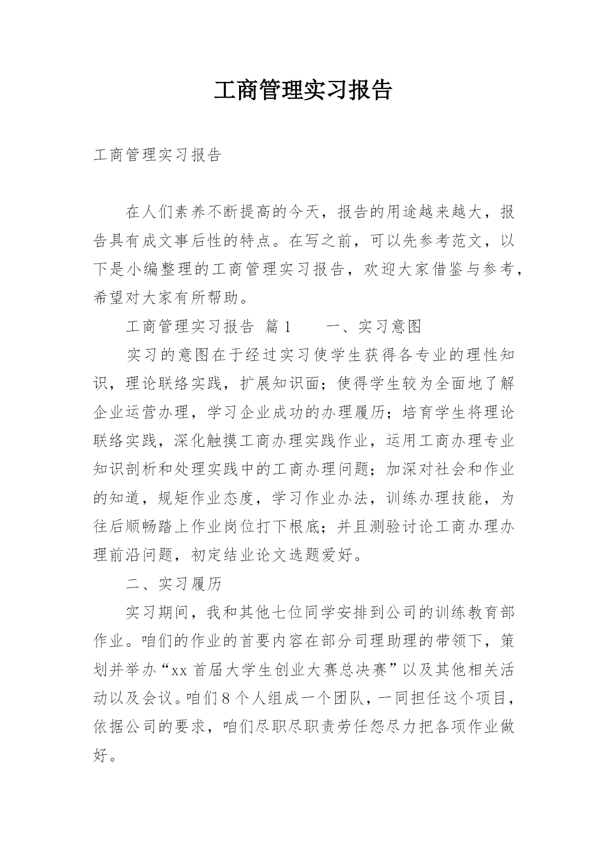 工商管理实习报告工商管理实习报告在人们素养不断提高的今天,报告的用途越来越大,报告具有成文事后性的特点。在写之前,可以先参考范文,以下是小编整理的工商管理实习报告,欢迎大家借鉴与参考,希望对大家有所帮助。工商管理实习报告篇1一、实习意图实习的意图在于经过实习使学生获得各专业的理性知识,理论联络实践,扩展知识面;使得学生较为全面地了解企业运营办理,学习企业成功的办理履历;培育学生将理论联络实践,深化触摸工商办理实践作业,运用工商办理专业知识剖析和处理实践中的工商办理问题;加深对社会和作业的知道,规矩作业态度