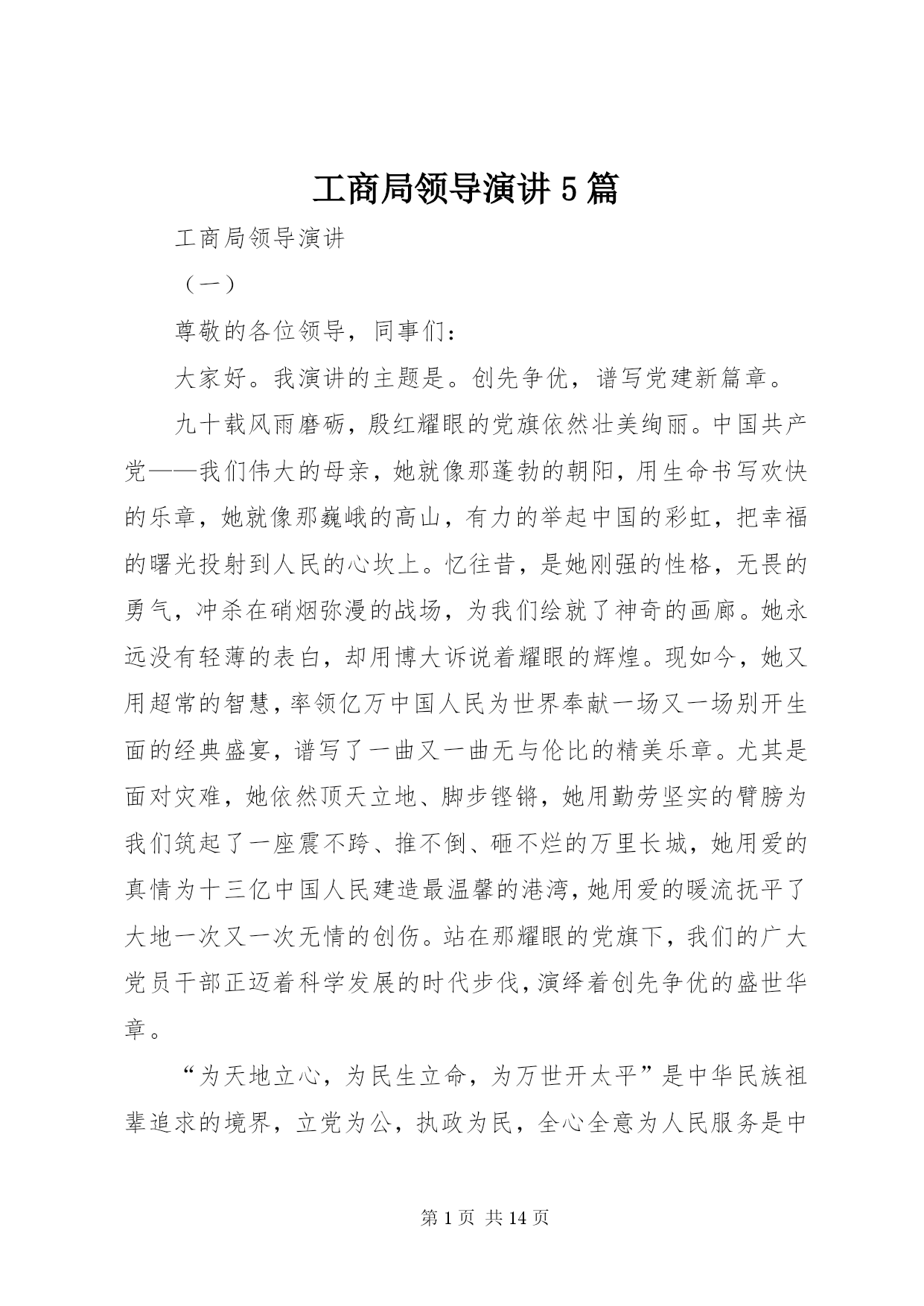 第PAGE\*Arabic\*MERGEFORMAT14页共NUMPAGES\*MERGEFORMAT14页工商局领导演讲5篇工商局领导演讲(一)尊敬的各位领导,同事们:大家好。我演讲的主题是。创先争优,谱写党建新篇章。九十载风雨磨砺,殷红耀眼的党旗依然壮美绚丽。中国共产党——我们伟大的母亲,她就像那蓬勃的朝阳,用生命书写欢快的乐章,她就像那巍峨的高山,有力的举起中国的彩虹,把幸福的曙光投射到人民的心坎上。忆往昔,是她刚强的性格,无畏的勇气,冲杀在硝烟弥漫的战场,为我们绘就了神奇的画廊。她永远