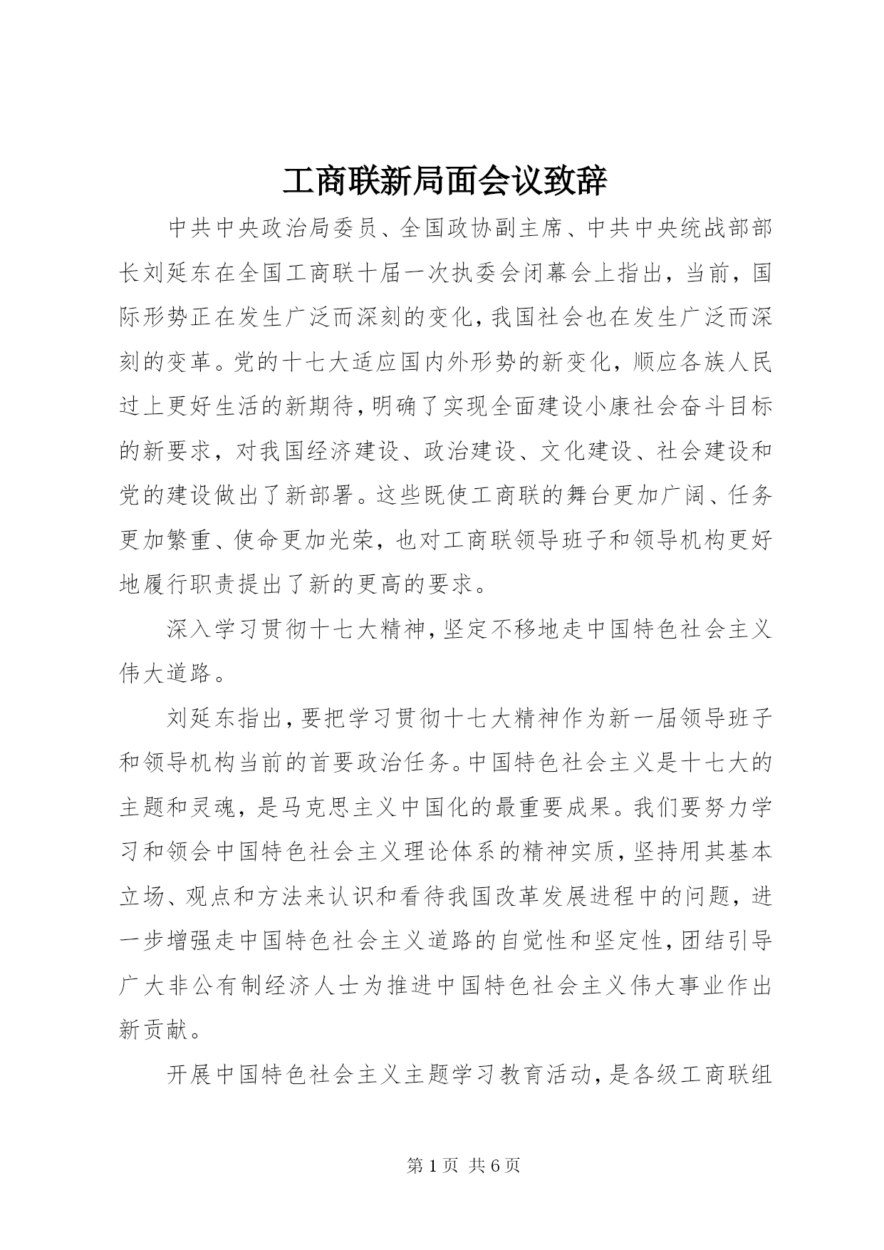 第PAGE\*Arabic\*MERGEFORMAT6页共NUMPAGES\*MERGEFORMAT6页工商联新局面会议致辞中共中央政治局委员、全国政协副主席、中共中央统战部部长刘延东在全国工商联十届一次执委会闭幕会上指出,当前,国际形势正在发生广泛而深刻的变化,我国社会也在发生广泛而深刻的变革。党的十七大适应国内外形势的新变化,顺应各族人民过上更好生活的新期待,明确了实现全面建设小康社会奋斗目标的新要求,对我国经济建设、政治建设、文化建设、社会建设和党的建设做出了新部署。这些既使工商联的舞台