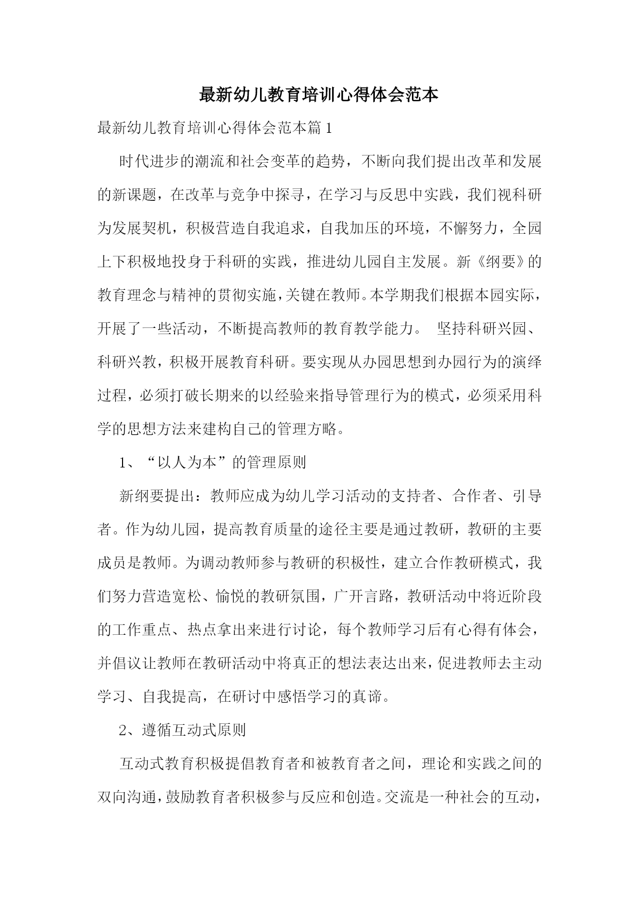 最新幼儿教育培训心得体会范本.doc