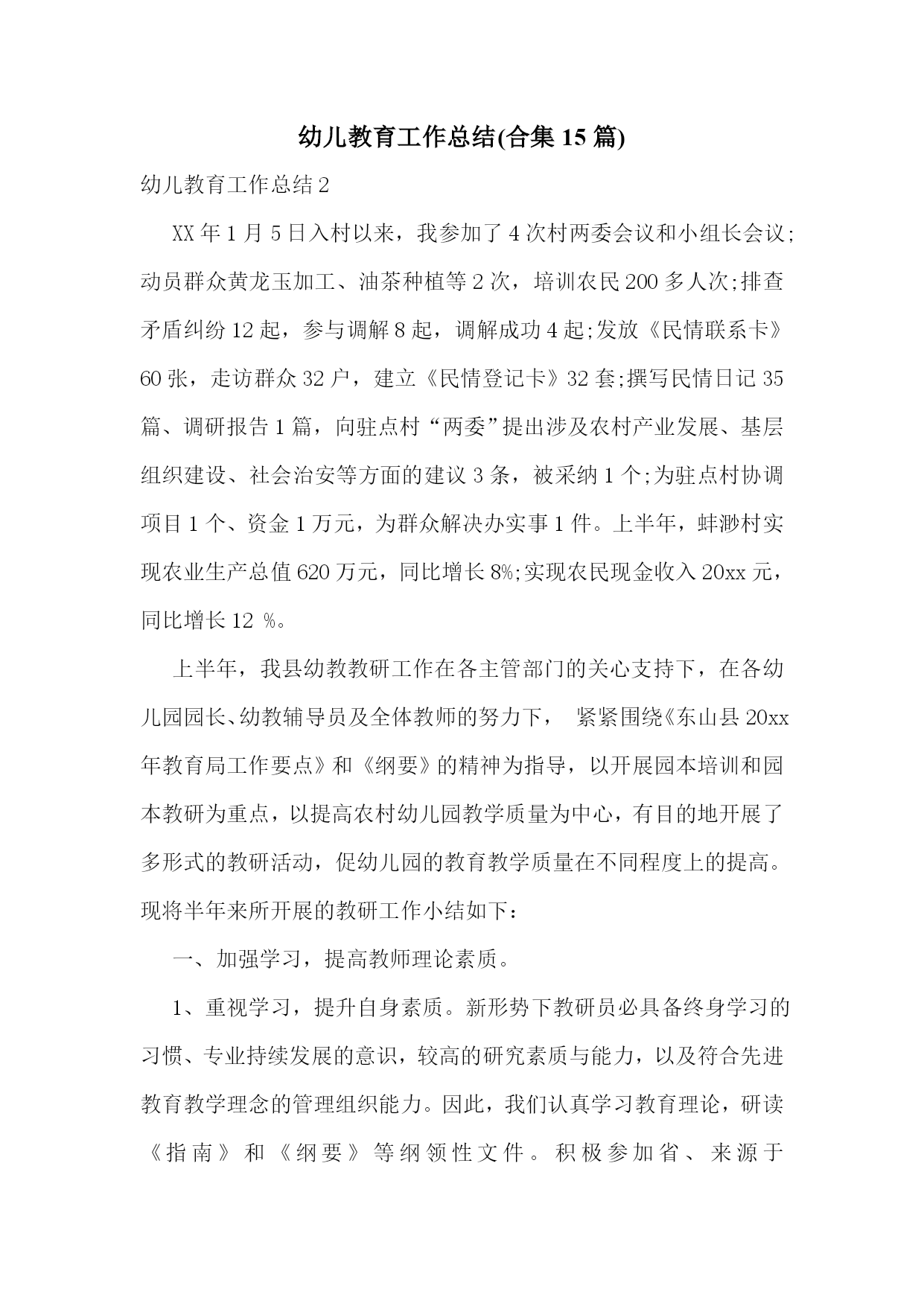 幼儿教育工作总结(合集15篇).doc