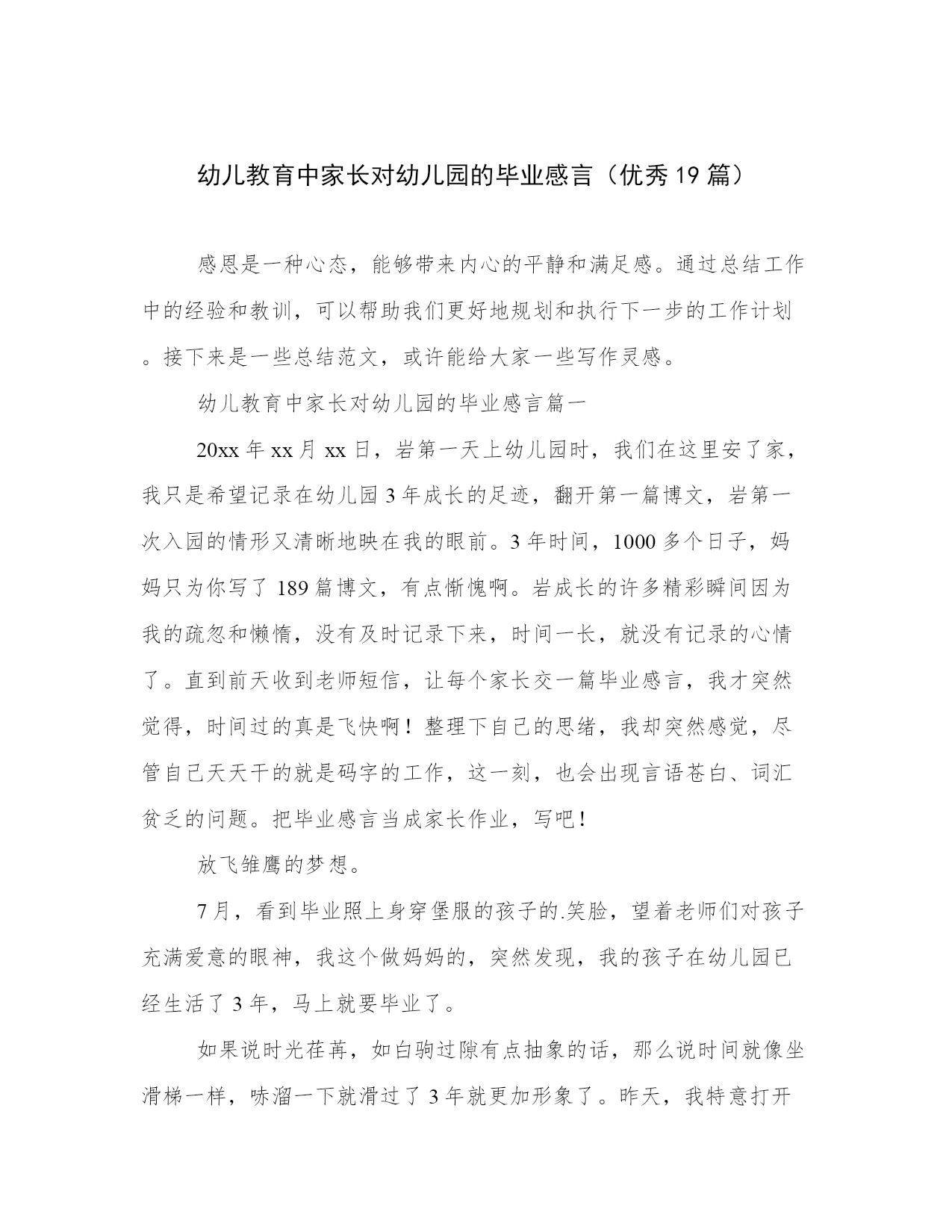 幼儿教育中家长对幼儿园的毕业感言(优秀19篇).docx