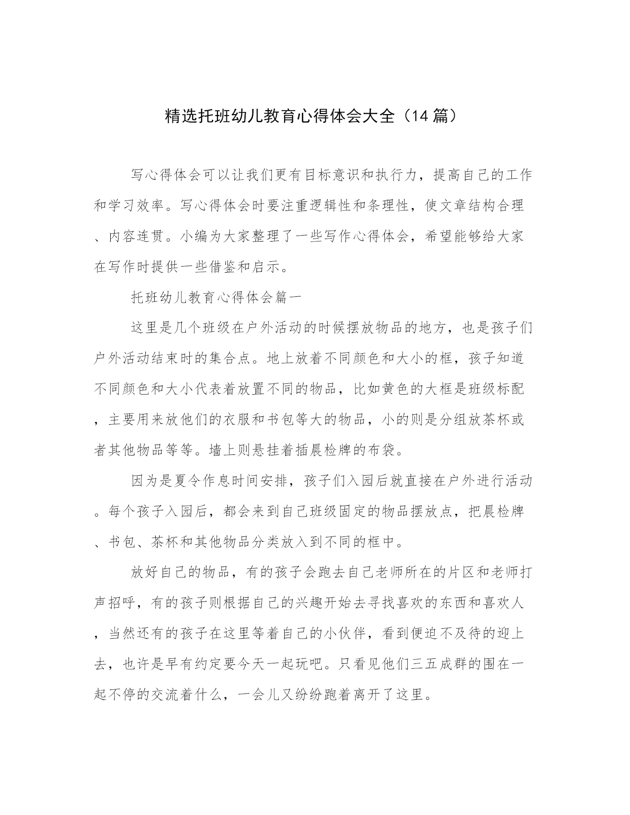 精选托班幼儿教育心得体会大全(14篇).docx