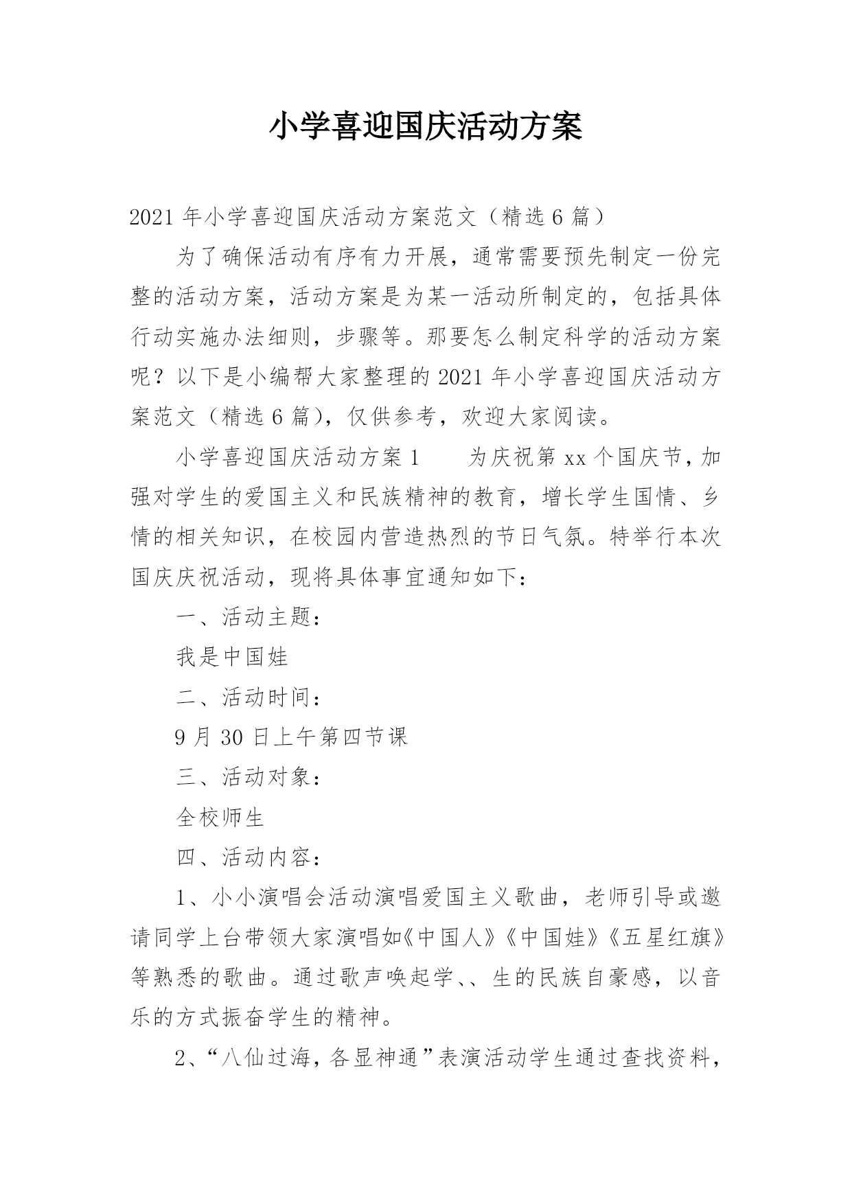 小学喜迎国庆活动方案.docx