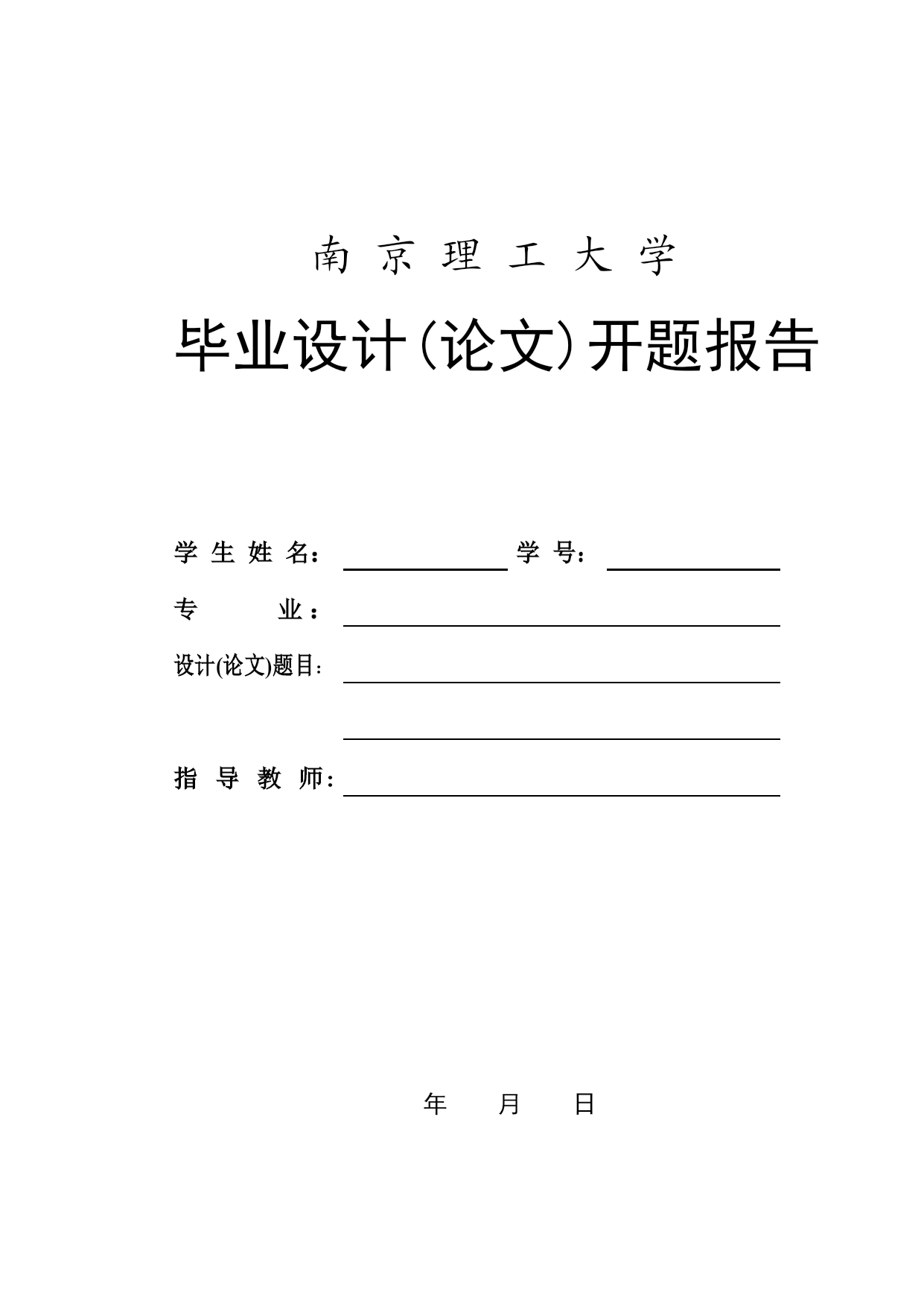 PAGE南京理工大学毕业设计(论文)开题报告学生姓名:学号:专业:设计(论文)题目:指导教师:年月日开题报告填写要求1.开题报告(含“文献综述”)作为毕业设计(论文)答辩委员会对学生答辩资格审查的依据材料之一。此报告应在指导教师指导下,由学生在毕业设计(论文)工作前期内完成,经指导教师签署意见及所在专业审查后生效;2.开题报告内容必须用黑墨水笔工整书写或按教务处统一设计的电子文档标准格式(可从教务处网页上下载)打印,禁止打印在其它纸上后剪贴,完成后应及时交给指导教师签署意见;3.“文献综述”应按论文
