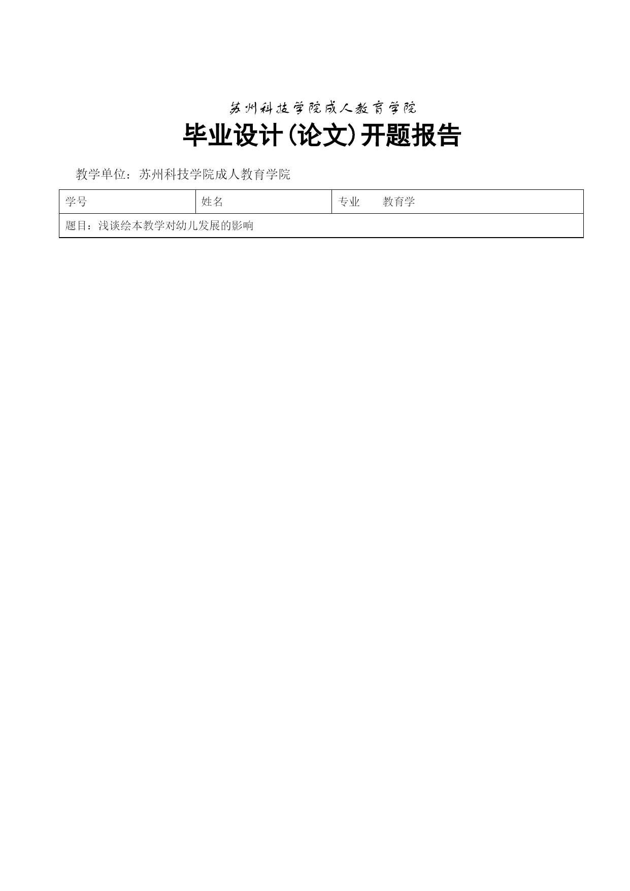 浅谈绘本教学对幼儿发展的影响开题报告.doc